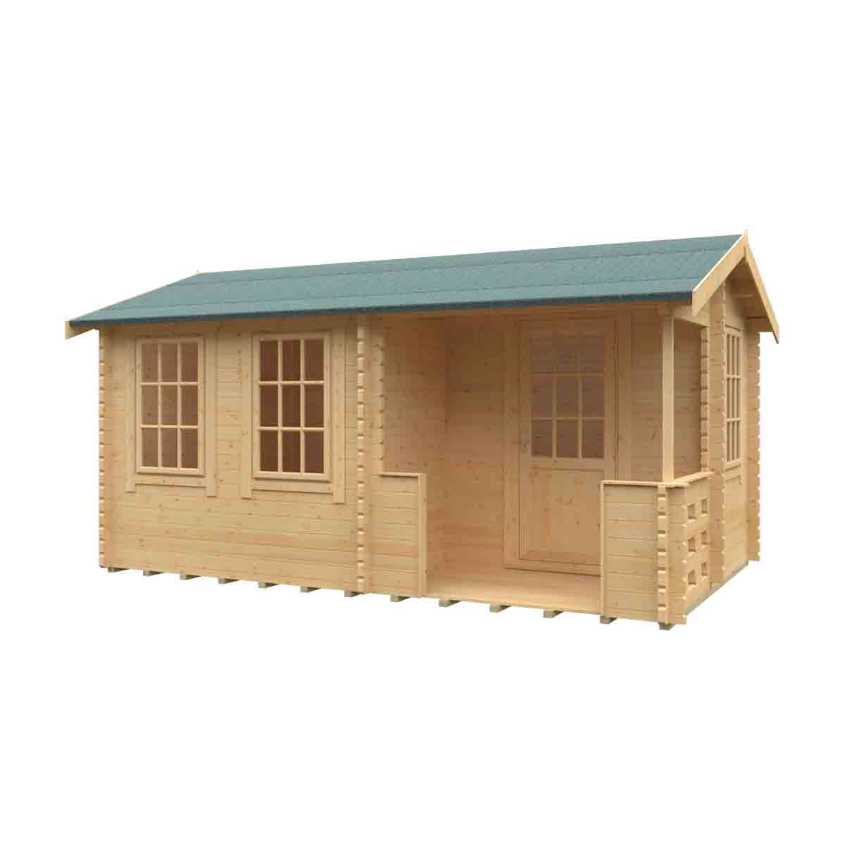 The Gyles is another of our finest quality 44mm Cabins. It features incredibly high quality joiner made Georgian Style draught sealed opening windows and a Georgian Style Single door inset into the cabin’s integral veranda. The unique shape of the Gyles allows incredible versatility as it can be used in so many different ways; as a luxury summerhouse, an office space, games room or an outdoor gym. You must ensure that this garden building is assembled strictly in accordance with the assembly instructions that are provided and is installed on a firm and level base constructed from a suitably durable material. The garden building should be treated shortly after assembly, both externally and internally, with a good quality wood preserver and treated with a water-resistant treatment. Treatment should be reapplied annually to prolong the life of your building. Images and photos of products are provided for illustrative purposes only. Please note that product colours can vary slightly due to the digital photography process and variations in individual user monitor settings.