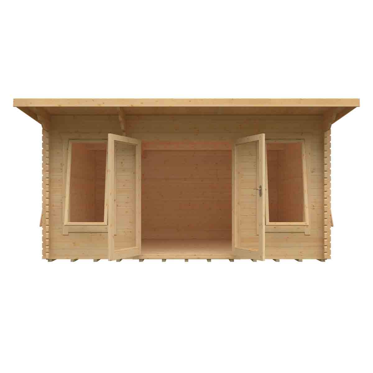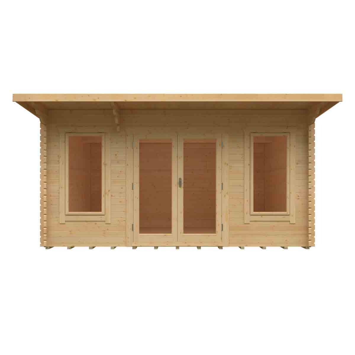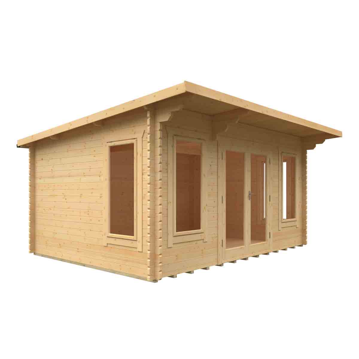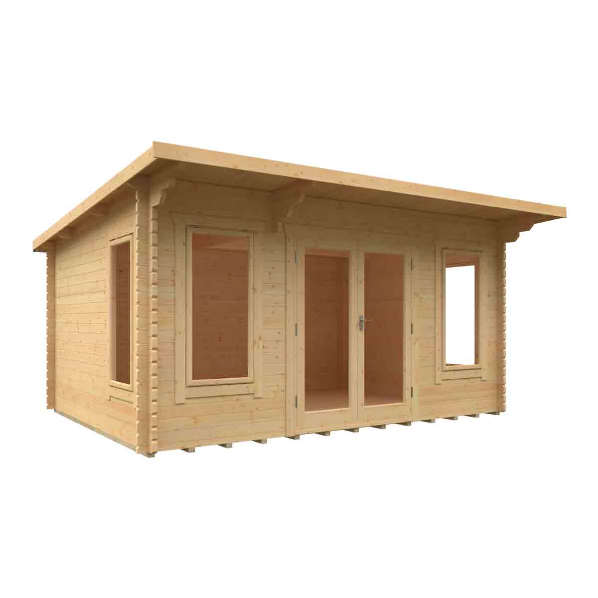 The Beausale 44mm Pent Log Cabin is a refined showcase of British-made quality, offering a bold yet practical solution for modern outdoor living. With its clean architectural lines, extended roof profile, and full-length glazing, the Beausale stands out as a contemporary garden building that’s as functional as it is visually impressive. Whether you’re setting up a garden office, a home fitness studio, a creative workshop or a personal hideaway, this outstanding log cabin delivers a secure, stylish and comfortable space to suit your lifestyle. Engineered from thick, precision-cut 44mm interlocking timber logs, this robust garden cabin offers excellent thermal performance, natural insulation and long-lasting durability. Its pent roof structure not only gives it a sleek, modern silhouette but also extends outward with a generous overhang - offering extra protection from the elements and creating a welcoming entrance area that provides shade in summer and shelter during wet weather. Light floods into the cabin through fully glazed double doors and side windows, all of which are toughened for safety and security, and professionally draft-sealed for comfort. A 5-lever locking system, pressure-treated floor joists, and an EPDM rubber roof covering are all included as standard, giving you exceptional build quality with minimal maintenance required. With its intelligent design and premium materials throughout, the Beausale is more than just a garden building: it’s a fully-fledged extension of your home, built to serve and inspire in every season.