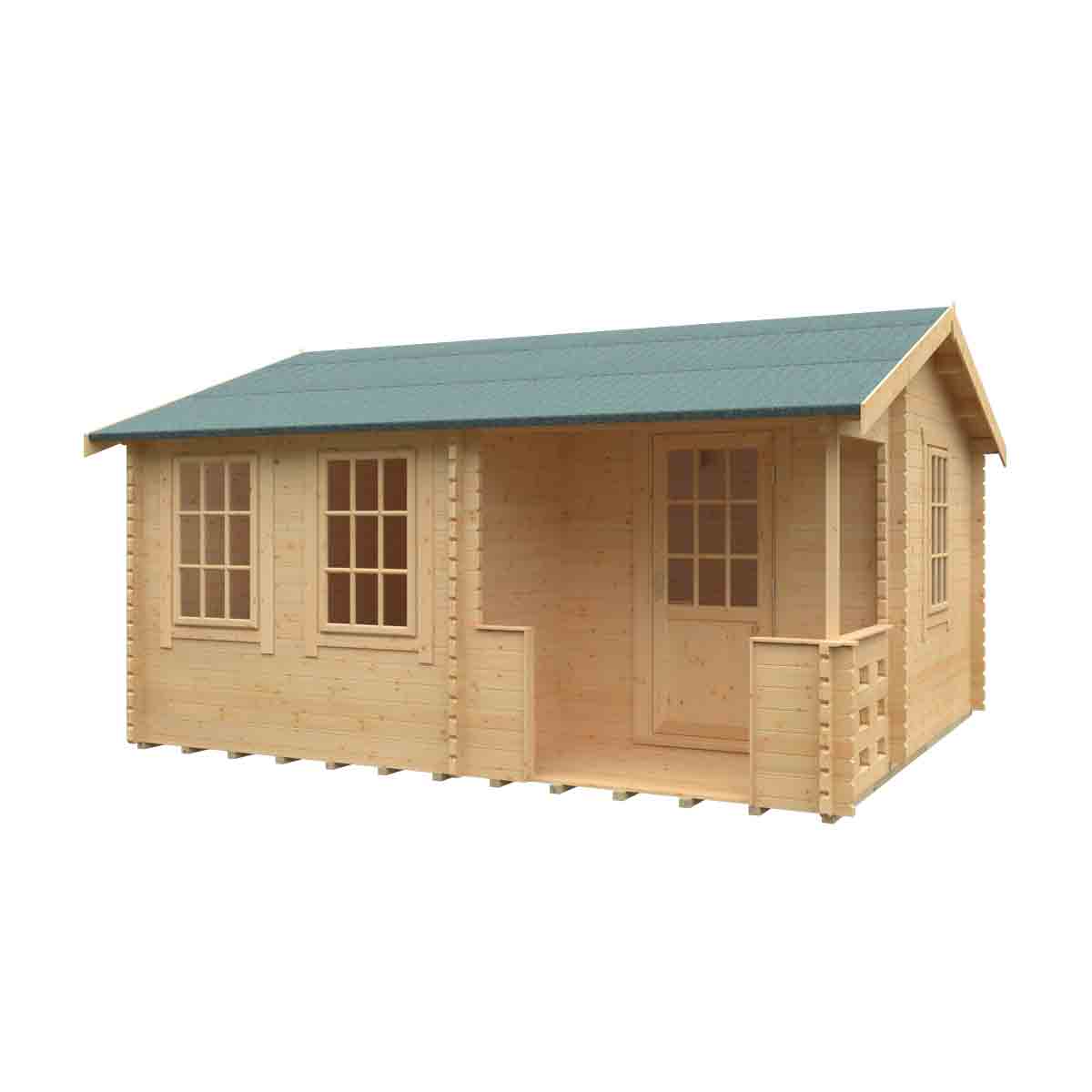The Gyles is another of our finest quality 44mm Cabins. It features incredibly high quality joiner made Georgian Style draught sealed opening windows and a Georgian Style Single door inset into the cabin’s integral veranda. The unique shape of the Gyles allows incredible versatility as it can be used in so many different ways; as a luxury summerhouse, an office space, games room or an outdoor gym. You must ensure that this garden building is assembled strictly in accordance with the assembly instructions that are provided and is installed on a firm and level base constructed from a suitably durable material. The garden building should be treated shortly after assembly, both externally and internally, with a good quality wood preserver and treated with a water-resistant treatment. Treatment should be reapplied annually to prolong the life of your building. Images and photos of products are provided for illustrative purposes only. Please note that product colours can vary slightly due to the digital photography process and variations in individual user monitor settings.