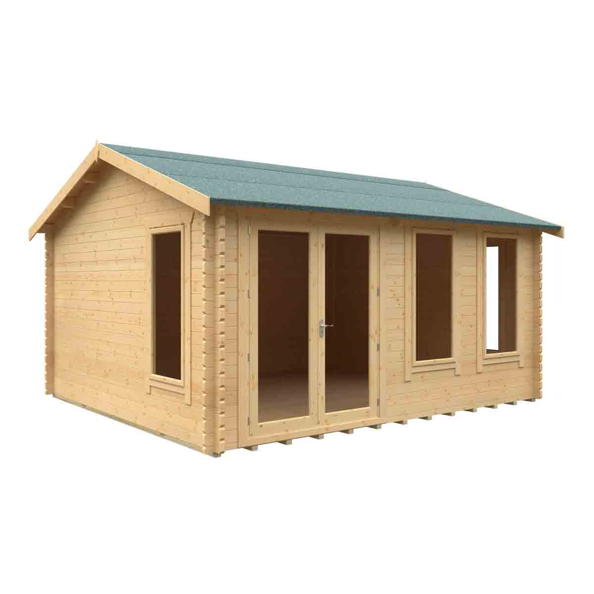 The Sherborne 44mm Log Cabin is one of the most bright and sunlit log cabins in our range. It comes with four full pane opening windows as standard. The windows and doors comprise of toughened glazing units, ensuring maximum security and safety for peace of mind. Manufactured at our UK factory, the Sherborne Log Cabin like the rest of our log cabin range, comprises of high quality European Softwood. You must ensure that this garden building is assembled strictly in accordance with the assembly instructions that are provided and is installed on a firm and level base constructed from a suitably durable material. The garden building should be treated shortly after assembly, both externally and internally, with a good quality wood preserver and treated with a water-resistant treatment. Treatment should be reapplied annually to prolong the life of your building. Images and photos of products are provided for illustrative purposes only. Please note that product colours can vary slightly due to the digital photography process and variations in individual user monitor settings.