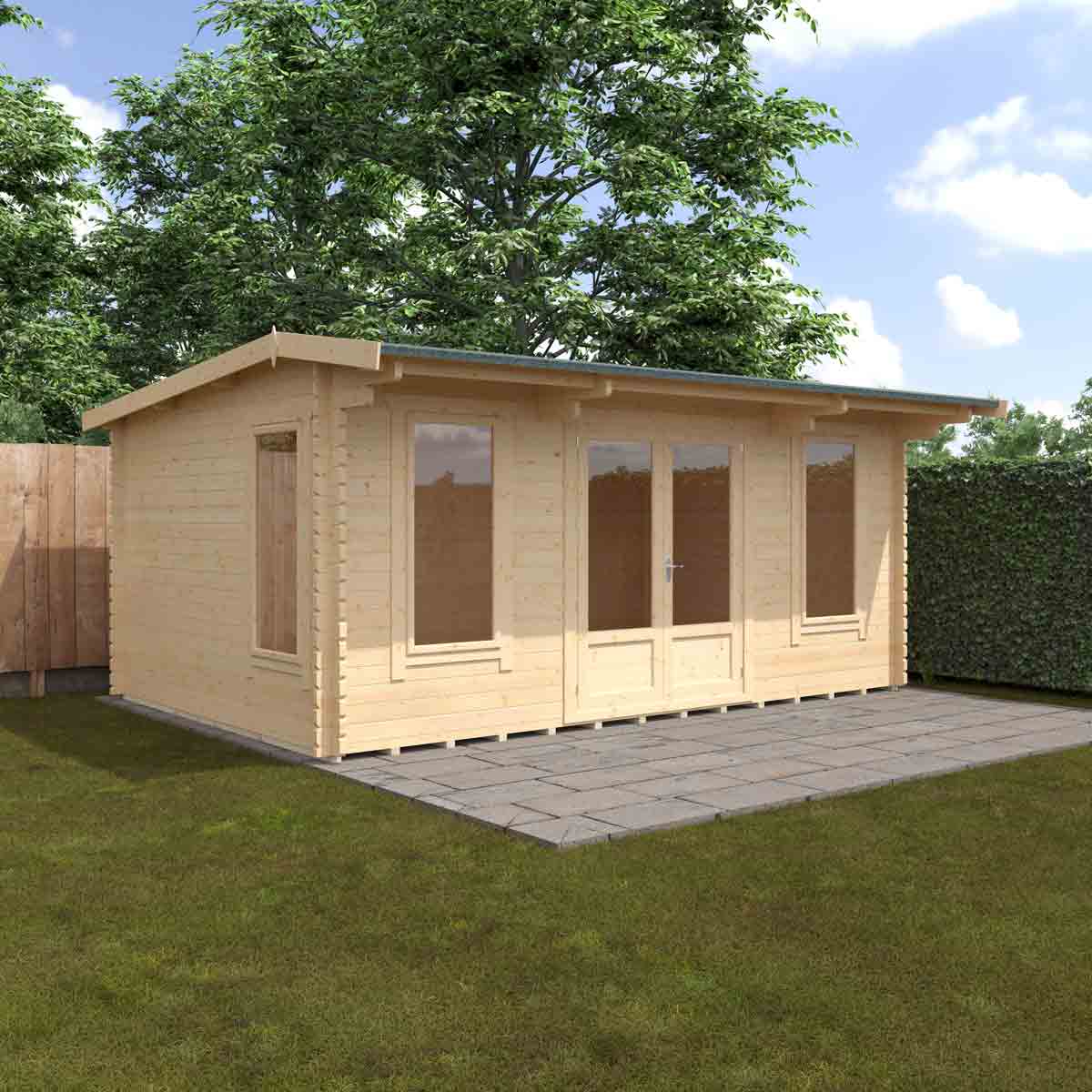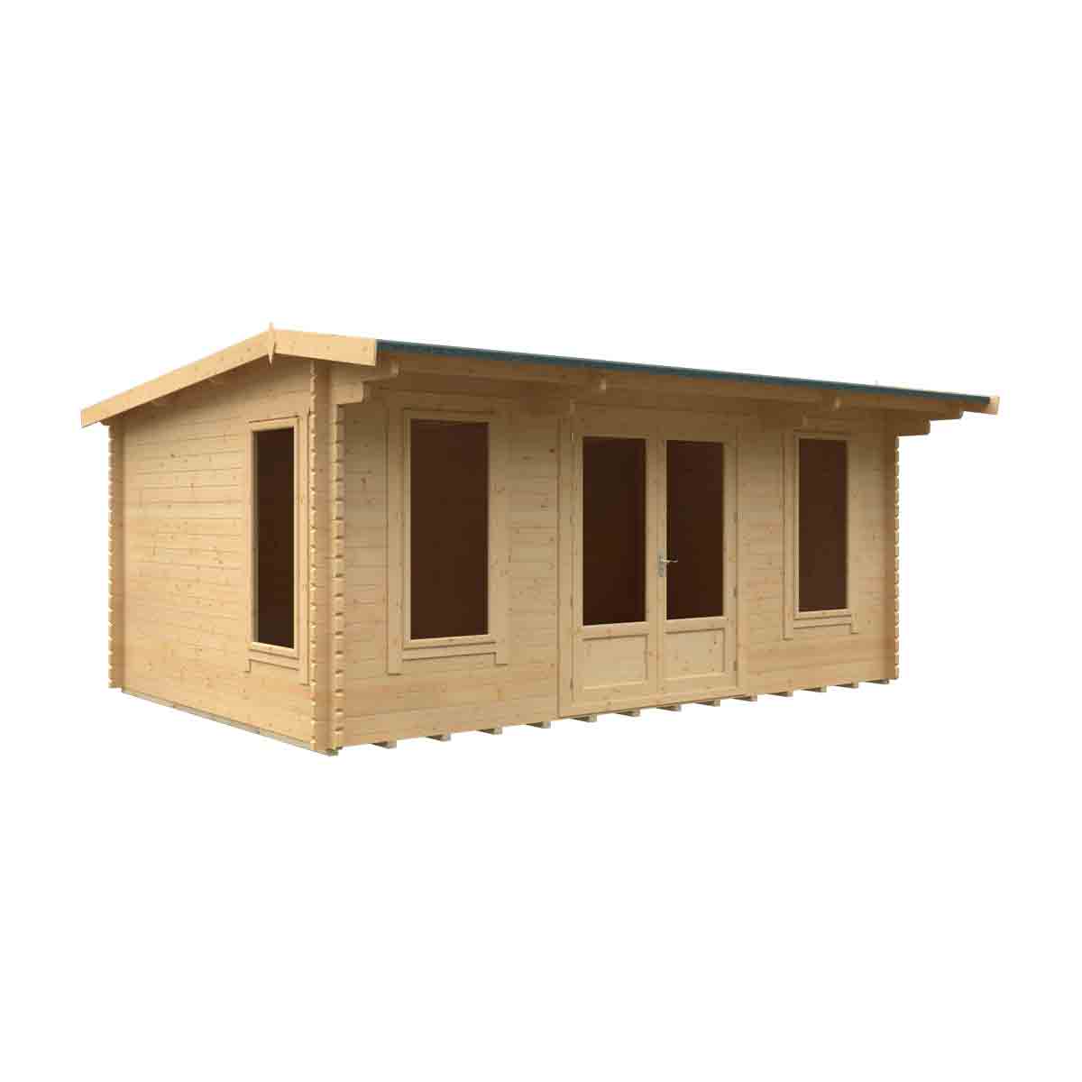 One of the latest designs in our range, the Jacob Log Cabin combines spacious design with quality in mind. The hybrid design of the roof allows more headroom inside the cabin but complies with the 2. 5m high planning regulation, whilst the generous overhang will protect you from the elements all year round. You must ensure that this garden building is assembled strictly in accordance with the assembly instructions that are provided and is installed on a firm and level base constructed from a suitably durable material. The garden building should be treated shortly after assembly, both externally and internally, with a good quality wood preserver and treated with a water-resistant treatment. Treatment should be reapplied annually to prolong the life of your building. Images and photos of products are provided for illustrative purposes only. Please note that product colours can vary slightly due to the digital photography process and variations in individual user monitor settings.