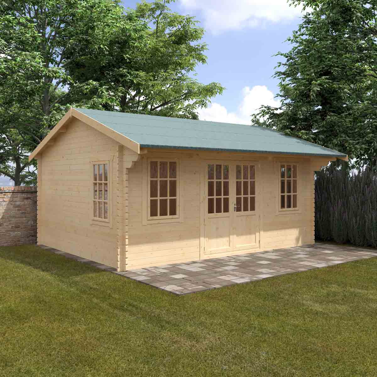 The Dalton Log Cabin combines luxury, elegance and space with fantastic quality. Constructed from 44mm interlocking logs, the Dalton is sure to last for years to come. All sizes come with draught sealed Georgian Style double doors and joiner made opening windows, ensuring your cabin will be both warm and secure. Optionally you can upgrade to our heavy duty coloured shingles and guttering to really complete this log cabin. You must ensure that this garden building is assembled strictly in accordance with the assembly instructions that are provided and is installed on a firm and level base constructed from a suitably durable material. The garden building should be treated shortly after assembly, both externally and internally, with a good quality wood preserver and treated with a water-resistant treatment. Treatment should be reapplied annually to prolong the life of your building. Images and photos of products are provided for illustrative purposes only. Please note that product colours can vary slightly due to the digital photography process and variations in individual user monitor settings.
