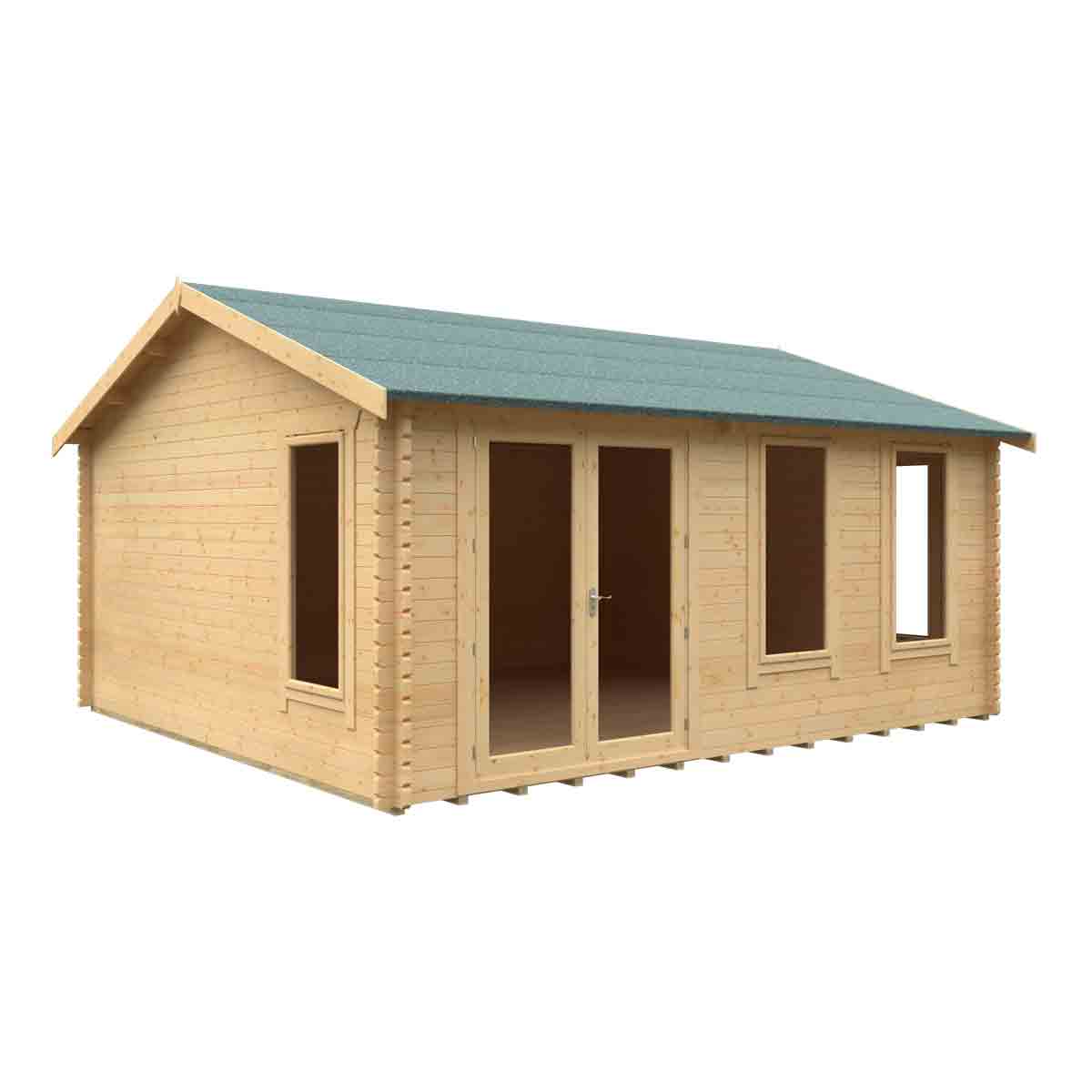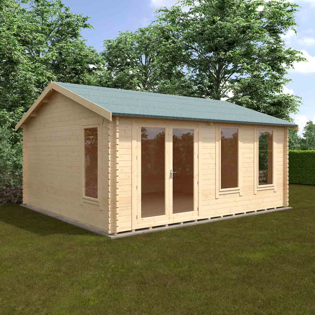 The Sherborne 44mm Log Cabin is one of the most bright and sunlit log cabins in our range. It comes with four full pane opening windows as standard. The windows and doors comprise of toughened glazing units, ensuring maximum security and safety for peace of mind. Manufactured at our UK factory, the Sherborne Log Cabin like the rest of our log cabin range, comprises of high quality European Softwood. You must ensure that this garden building is assembled strictly in accordance with the assembly instructions that are provided and is installed on a firm and level base constructed from a suitably durable material. The garden building should be treated shortly after assembly, both externally and internally, with a good quality wood preserver and treated with a water-resistant treatment. Treatment should be reapplied annually to prolong the life of your building. Images and photos of products are provided for illustrative purposes only. Please note that product colours can vary slightly due to the digital photography process and variations in individual user monitor settings.