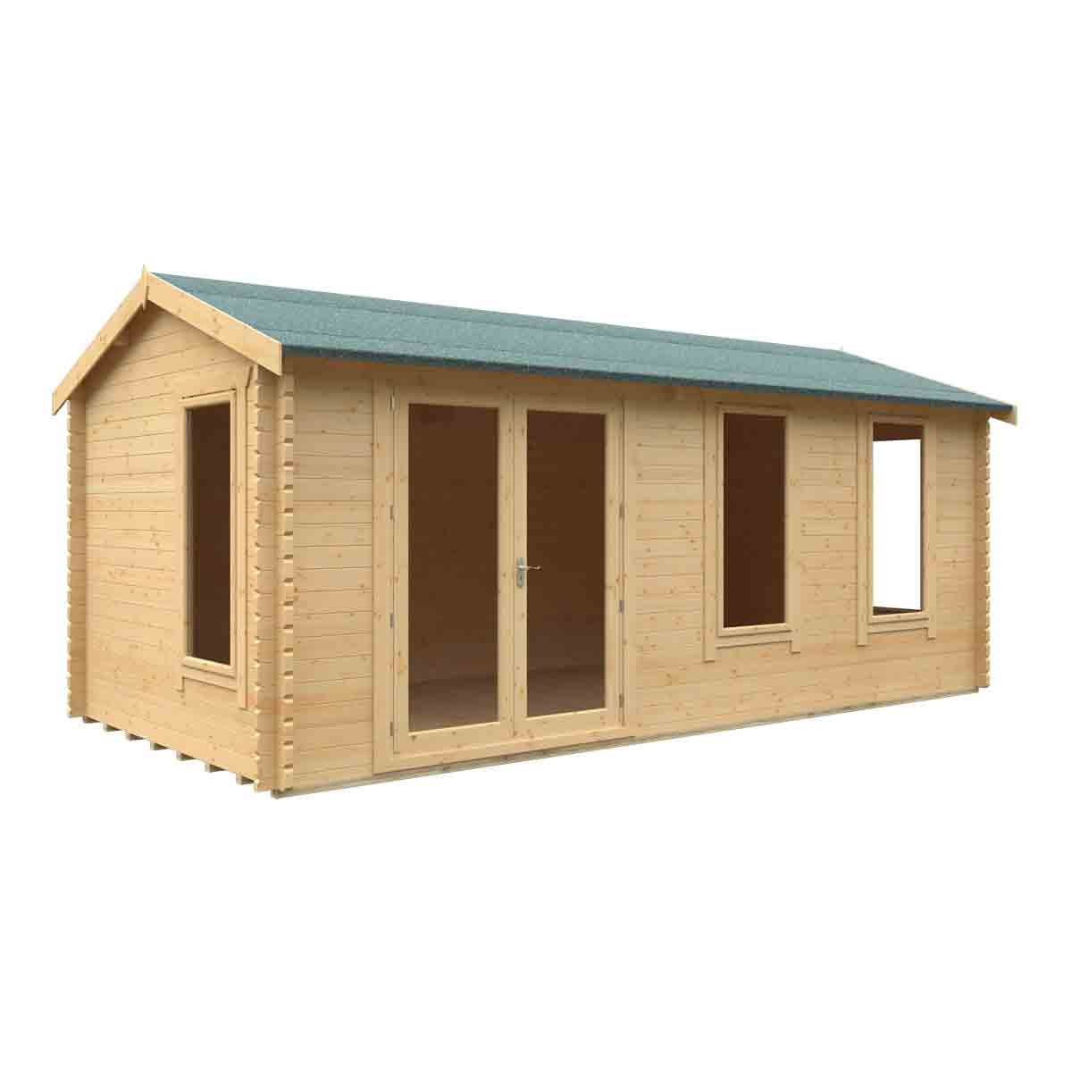 The Sherborne 44mm Log Cabin is one of the most bright and sunlit log cabins in our range. It comes with four full pane opening windows as standard. The windows and doors comprise of toughened glazing units, ensuring maximum security and safety for peace of mind. Manufactured at our UK factory, the Sherborne Log Cabin like the rest of our log cabin range, comprises of high quality European Softwood. You must ensure that this garden building is assembled strictly in accordance with the assembly instructions that are provided and is installed on a firm and level base constructed from a suitably durable material. The garden building should be treated shortly after assembly, both externally and internally, with a good quality wood preserver and treated with a water-resistant treatment. Treatment should be reapplied annually to prolong the life of your building. Images and photos of products are provided for illustrative purposes only. Please note that product colours can vary slightly due to the digital photography process and variations in individual user monitor settings.