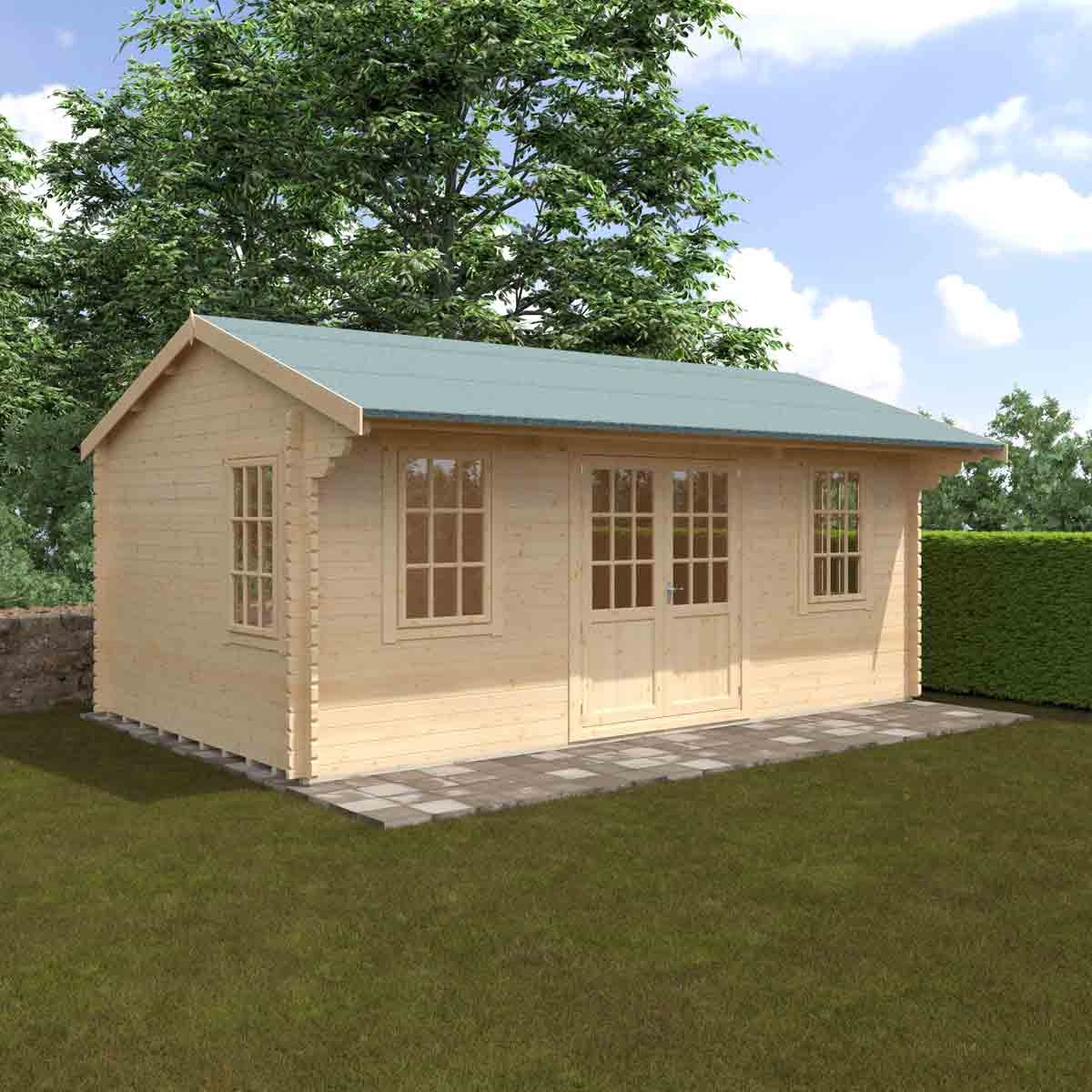 The Dalton Log Cabin combines luxury, elegance and space with fantastic quality. Constructed from 44mm interlocking logs, the Dalton is sure to last for years to come. All sizes come with draught sealed Georgian Style double doors and joiner made opening windows, ensuring your cabin will be both warm and secure. Optionally you can upgrade to our heavy duty coloured shingles and guttering to really complete this log cabin. You must ensure that this garden building is assembled strictly in accordance with the assembly instructions that are provided and is installed on a firm and level base constructed from a suitably durable material. The garden building should be treated shortly after assembly, both externally and internally, with a good quality wood preserver and treated with a water-resistant treatment. Treatment should be reapplied annually to prolong the life of your building. Images and photos of products are provided for illustrative purposes only. Please note that product colours can vary slightly due to the digital photography process and variations in individual user monitor settings.