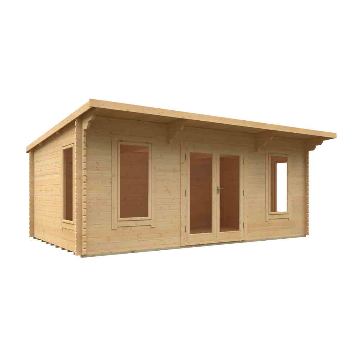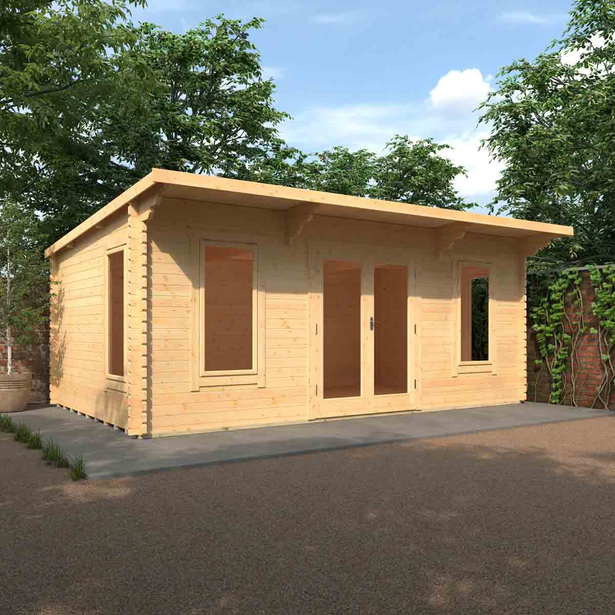 The Beausale 44mm Pent Log Cabin is a refined showcase of British-made quality, offering a bold yet practical solution for modern outdoor living. With its clean architectural lines, extended roof profile, and full-length glazing, the Beausale stands out as a contemporary garden building that’s as functional as it is visually impressive. Whether you’re setting up a garden office, a home fitness studio, a creative workshop or a personal hideaway, this outstanding log cabin delivers a secure, stylish and comfortable space to suit your lifestyle. Engineered from thick, precision-cut 44mm interlocking timber logs, this robust garden cabin offers excellent thermal performance, natural insulation and long-lasting durability. Its pent roof structure not only gives it a sleek, modern silhouette but also extends outward with a generous overhang - offering extra protection from the elements and creating a welcoming entrance area that provides shade in summer and shelter during wet weather. Light floods into the cabin through fully glazed double doors and side windows, all of which are toughened for safety and security, and professionally draft-sealed for comfort. A 5-lever locking system, pressure-treated floor joists, and an EPDM rubber roof covering are all included as standard, giving you exceptional build quality with minimal maintenance required. With its intelligent design and premium materials throughout, the Beausale is more than just a garden building: it’s a fully-fledged extension of your home, built to serve and inspire in every season.