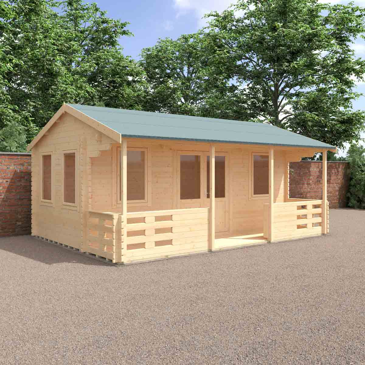 The Adlington 44mm thick Log Cabin incorporates a large 4ft(approx) deep veranda in its unique yet fantastic design, making it an amazing garden retreat for those hot summer days. Ideal to relax on or equally to shelter from the rain and storms, complete with roof overhang this really could be the log cabin for you. It also incorporates a large internal storage shelf above the veranda - superb for keeping things tucked out of sight. You must ensure that this garden building is assembled strictly in accordance with the assembly instructions that are provided and is installed on a firm and level base constructed from a suitably durable material. The garden building should be treated shortly after assembly, both externally and internally, with a good quality wood preserver and treated with a water-resistant treatment. Treatment should be reapplied annually to prolong the life of your building. Images and photos of products are provided for illustrative purposes only. Please note that product colours can vary slightly due to the digital photography process and variations in individual user monitor settings.