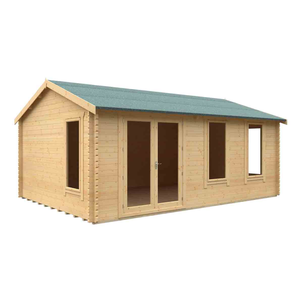 The Sherborne 44mm Log Cabin is one of the most bright and sunlit log cabins in our range. It comes with four full pane opening windows as standard. The windows and doors comprise of toughened glazing units, ensuring maximum security and safety for peace of mind. Manufactured at our UK factory, the Sherborne Log Cabin like the rest of our log cabin range, comprises of high quality European Softwood. You must ensure that this garden building is assembled strictly in accordance with the assembly instructions that are provided and is installed on a firm and level base constructed from a suitably durable material. The garden building should be treated shortly after assembly, both externally and internally, with a good quality wood preserver and treated with a water-resistant treatment. Treatment should be reapplied annually to prolong the life of your building. Images and photos of products are provided for illustrative purposes only. Please note that product colours can vary slightly due to the digital photography process and variations in individual user monitor settings.