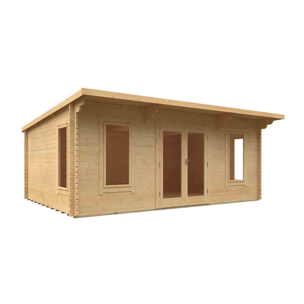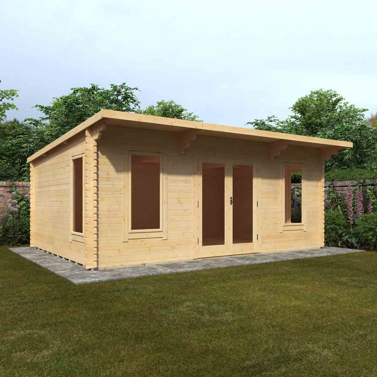 The Beausale 44mm Pent Log Cabin is a refined showcase of British-made quality, offering a bold yet practical solution for modern outdoor living. With its clean architectural lines, extended roof profile, and full-length glazing, the Beausale stands out as a contemporary garden building that’s as functional as it is visually impressive. Whether you’re setting up a garden office, a home fitness studio, a creative workshop or a personal hideaway, this outstanding log cabin delivers a secure, stylish and comfortable space to suit your lifestyle. Engineered from thick, precision-cut 44mm interlocking timber logs, this robust garden cabin offers excellent thermal performance, natural insulation and long-lasting durability. Its pent roof structure not only gives it a sleek, modern silhouette but also extends outward with a generous overhang - offering extra protection from the elements and creating a welcoming entrance area that provides shade in summer and shelter during wet weather. Light floods into the cabin through fully glazed double doors and side windows, all of which are toughened for safety and security, and professionally draft-sealed for comfort. A 5-lever locking system, pressure-treated floor joists, and an EPDM rubber roof covering are all included as standard, giving you exceptional build quality with minimal maintenance required. With its intelligent design and premium materials throughout, the Beausale is more than just a garden building: it’s a fully-fledged extension of your home, built to serve and inspire in every season.