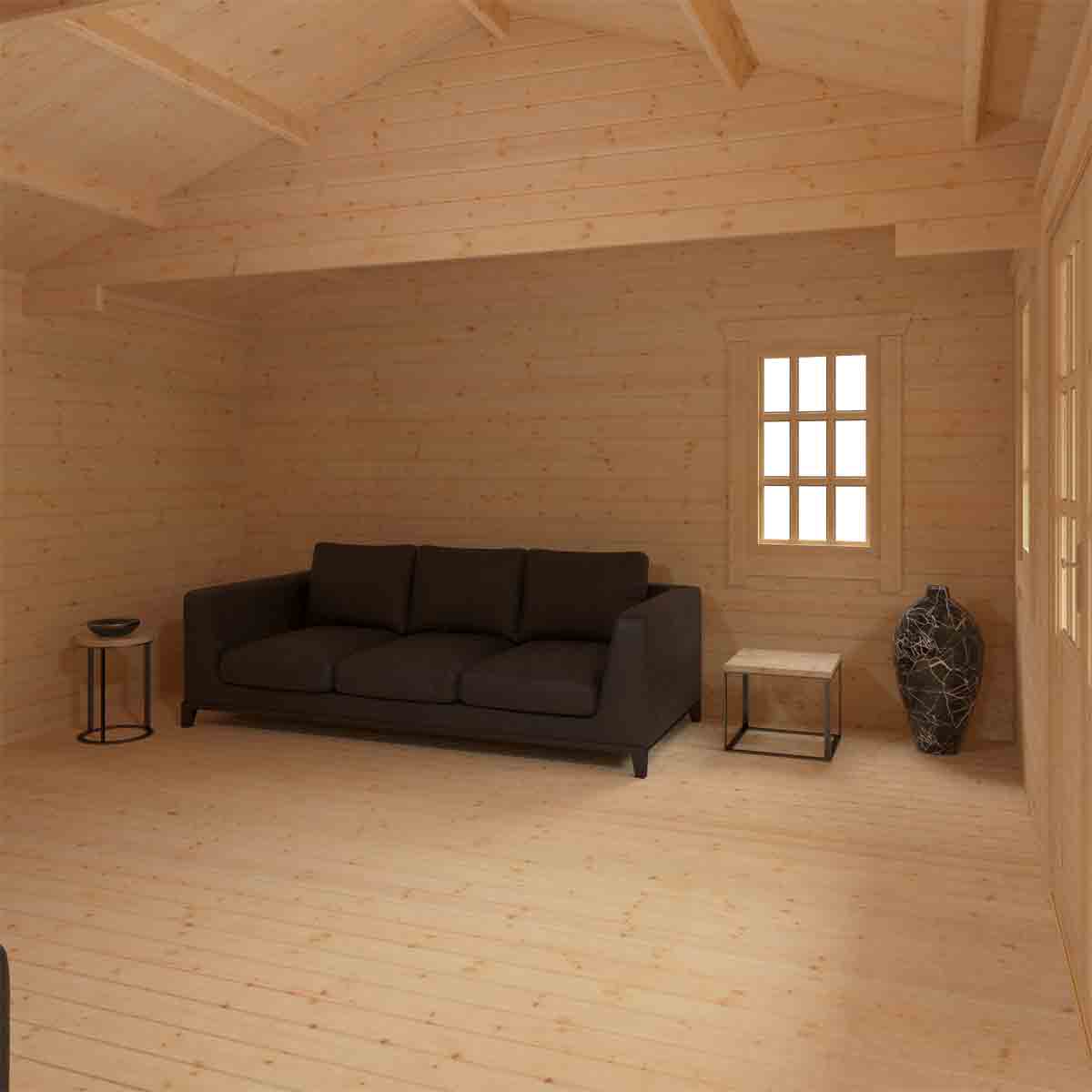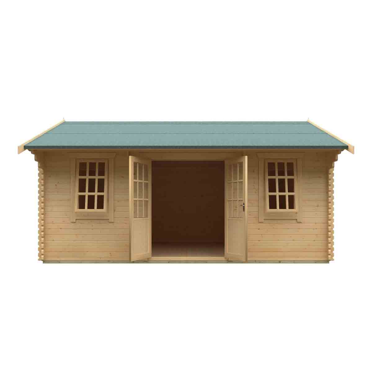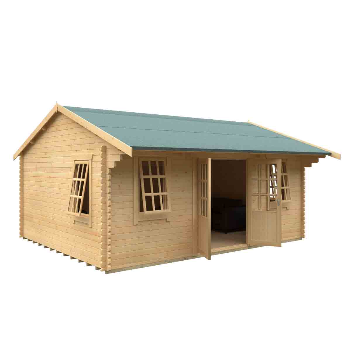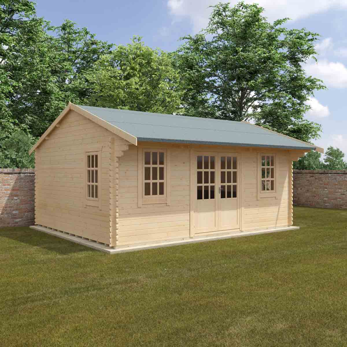 The Dalton Log Cabin combines luxury, elegance and space with fantastic quality. Constructed from 44mm interlocking logs, the Dalton is sure to last for years to come. All sizes come with draught sealed Georgian Style double doors and joiner made opening windows, ensuring your cabin will be both warm and secure. Optionally you can upgrade to our heavy duty coloured shingles and guttering to really complete this log cabin. You must ensure that this garden building is assembled strictly in accordance with the assembly instructions that are provided and is installed on a firm and level base constructed from a suitably durable material. The garden building should be treated shortly after assembly, both externally and internally, with a good quality wood preserver and treated with a water-resistant treatment. Treatment should be reapplied annually to prolong the life of your building. Images and photos of products are provided for illustrative purposes only. Please note that product colours can vary slightly due to the digital photography process and variations in individual user monitor settings.
