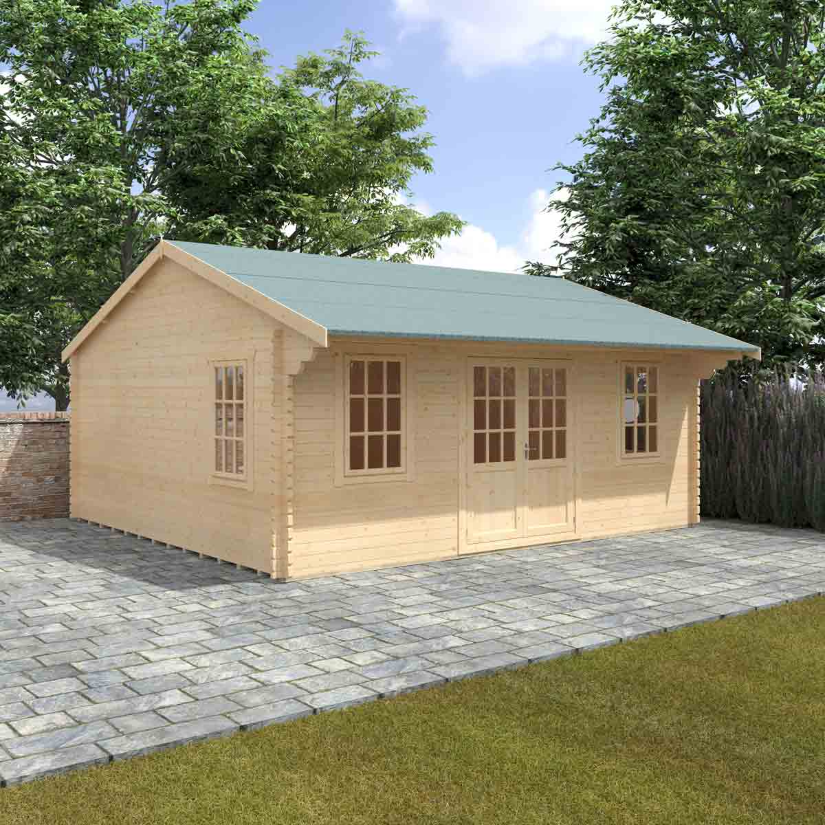 The Dalton Log Cabin combines luxury, elegance and space with fantastic quality. Constructed from 44mm interlocking logs, the Dalton is sure to last for years to come. All sizes come with draught sealed Georgian Style double doors and joiner made opening windows, ensuring your cabin will be both warm and secure. Optionally you can upgrade to our heavy duty coloured shingles and guttering to really complete this log cabin. You must ensure that this garden building is assembled strictly in accordance with the assembly instructions that are provided and is installed on a firm and level base constructed from a suitably durable material. The garden building should be treated shortly after assembly, both externally and internally, with a good quality wood preserver and treated with a water-resistant treatment. Treatment should be reapplied annually to prolong the life of your building. Images and photos of products are provided for illustrative purposes only. Please note that product colours can vary slightly due to the digital photography process and variations in individual user monitor settings.