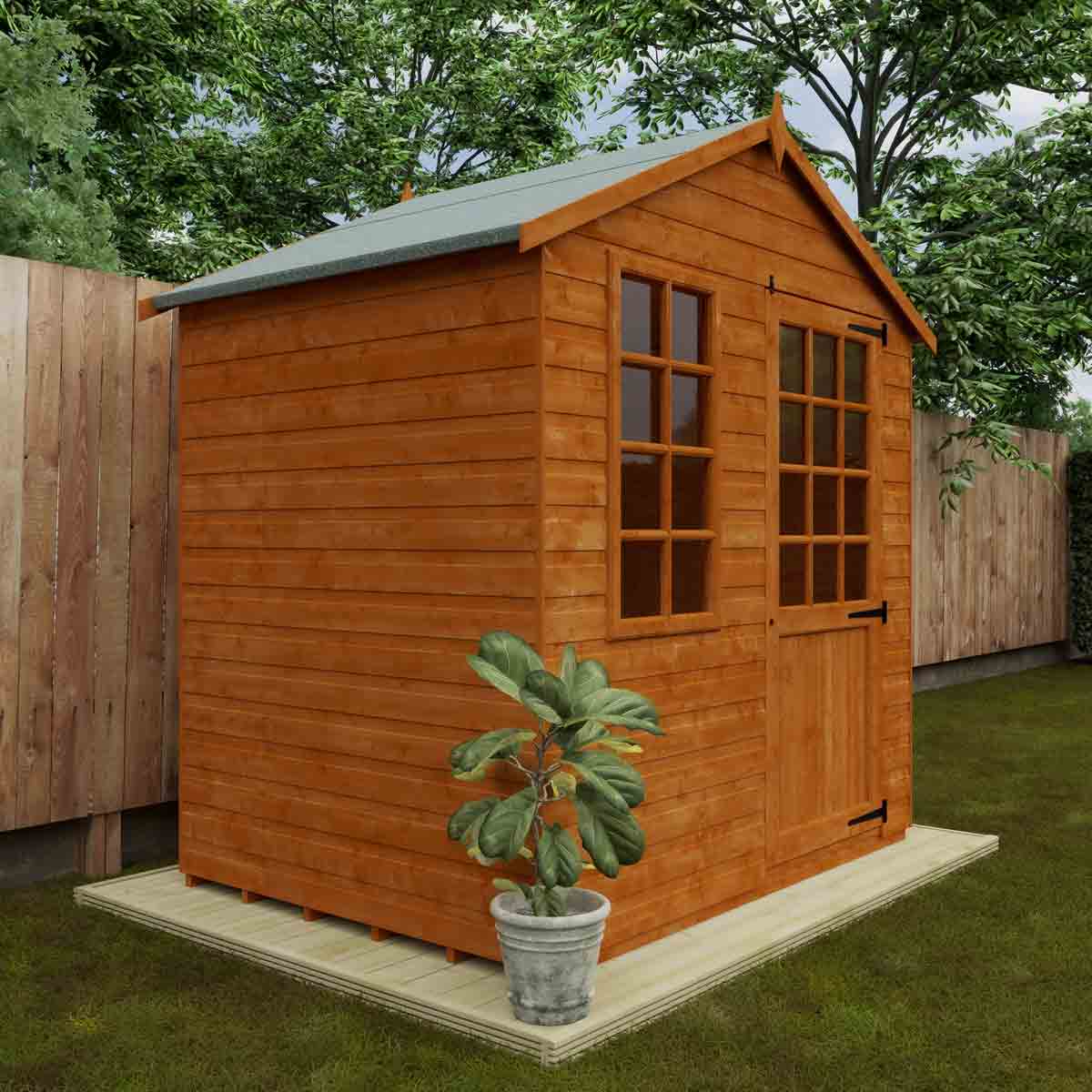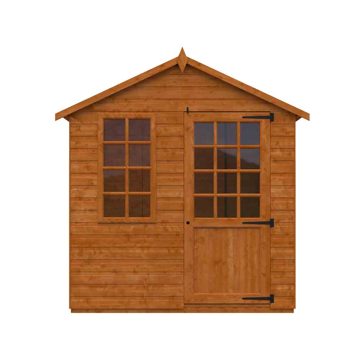 The picturesque summer room is a fantastic compact summerhouse to fit smaller garden spaces. It also features a glazed Georgian-style opening window as standard and a half-glazed Georgian-style door. You must ensure that this garden building is assembled strictly in accordance with the assembly instructions that are provided and is installed on a firm and level base constructed from a suitably durable material. The garden building should be treated shortly after assembly, both externally and internally, with a good quality wood preserver and treated with a water-resistant treatment. Treatment should be reapplied annually to prolong the life of your building. All glazing units must be sealed, inside and out with silicone or other watertight solution of your choice (not supplied). Images and photos of products are provided for illustrative purposes only. Please note that product colours can vary slightly due to the digital photography process and variations in individual user monitor settings.
