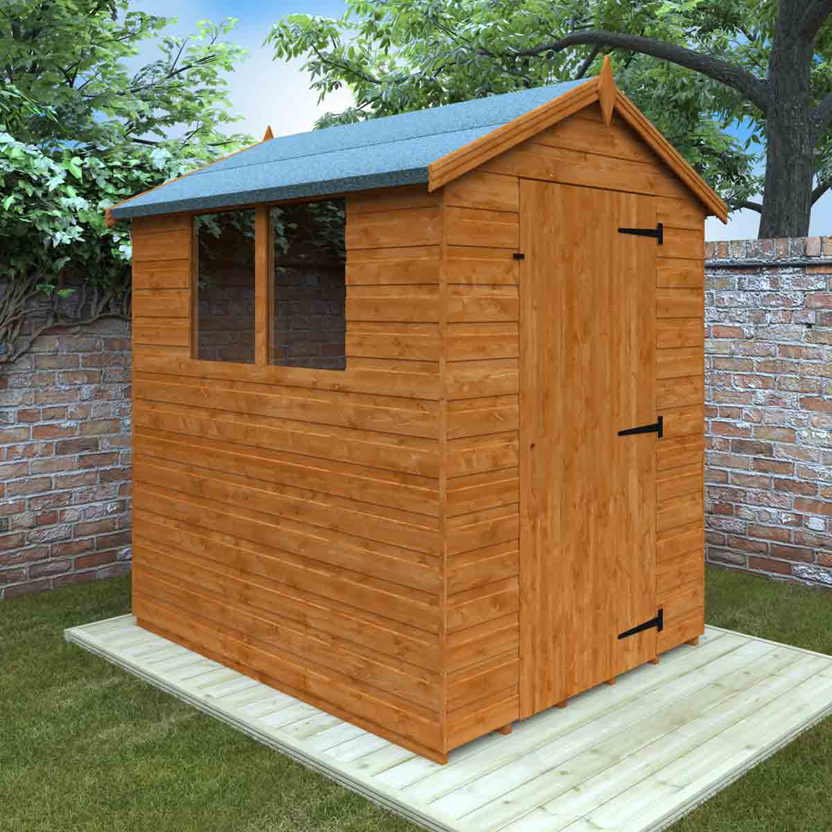 A traditional style garden shed with plenty of light and headroom in a vast range of sizes. The door will go on either end and the windows can be put on either side for flexibility. You must ensure that this garden building is assembled strictly in accordance with the assembly instructions that are provided and is installed on a firm and level base constructed from a suitably durable material. The garden building should be treated shortly after assembly, both externally and internally, with a good quality wood preserver and treated with a water-resistant treatment. Treatment should be reapplied annually to prolong the life of your building. All glazing units must be sealed, inside and out with silicone or other watertight solution of your choice (not supplied). Images and photos of products are provided for illustrative purposes only. Please note that product colours can vary slightly due to the digital photography process and variations in individual user monitor settings.