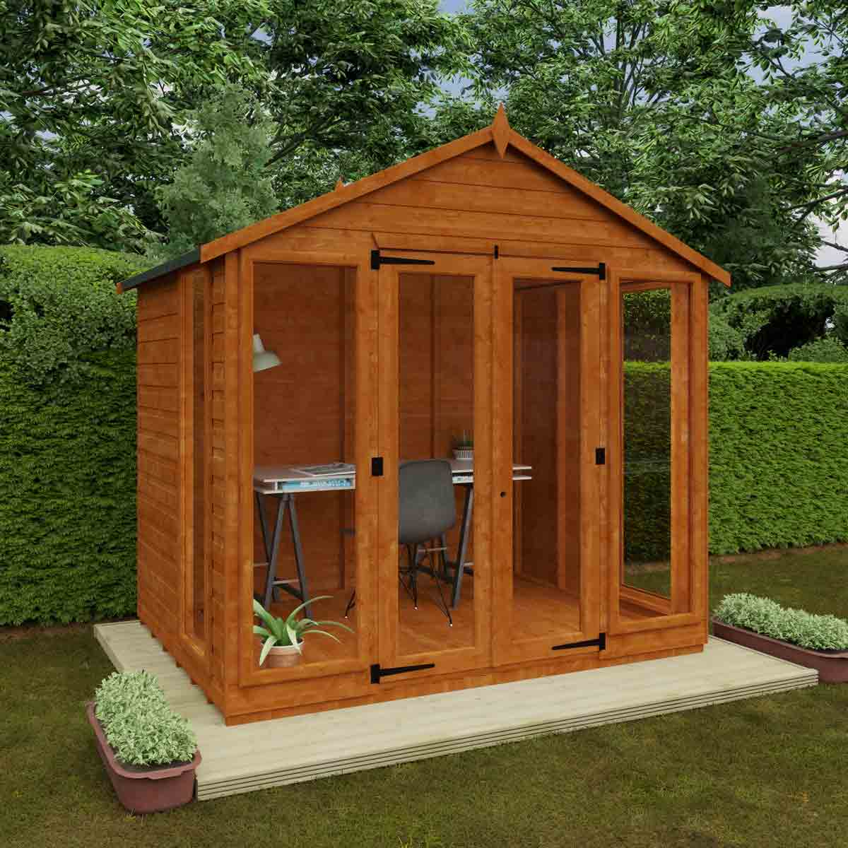 This wonderful addition to our Summerhouse range features full pane windows for that contemporary feel whilst allowing maximum light to enter. This Full Pane Summerhouse will surely look the part in any garden space! The full pane joiner made windows come complete with toughened glass for added safety and security. You must ensure that this garden building is assembled strictly in accordance with the assembly instructions that are provided and is installed on a firm and level base constructed from a suitably durable material. The garden building should be treated shortly after assembly, both externally and internally, with a good quality wood preserver and treated with a water-resistant treatment. Treatment should be reapplied annually to prolong the life of your building. All glazing units must be sealed, inside and out with silicone or other watertight solution of your choice (not supplied). Images and photos of products are provided for illustrative purposes only. Please note that product colours can vary slightly due to the digital photography process and variations in individual user monitor settings.