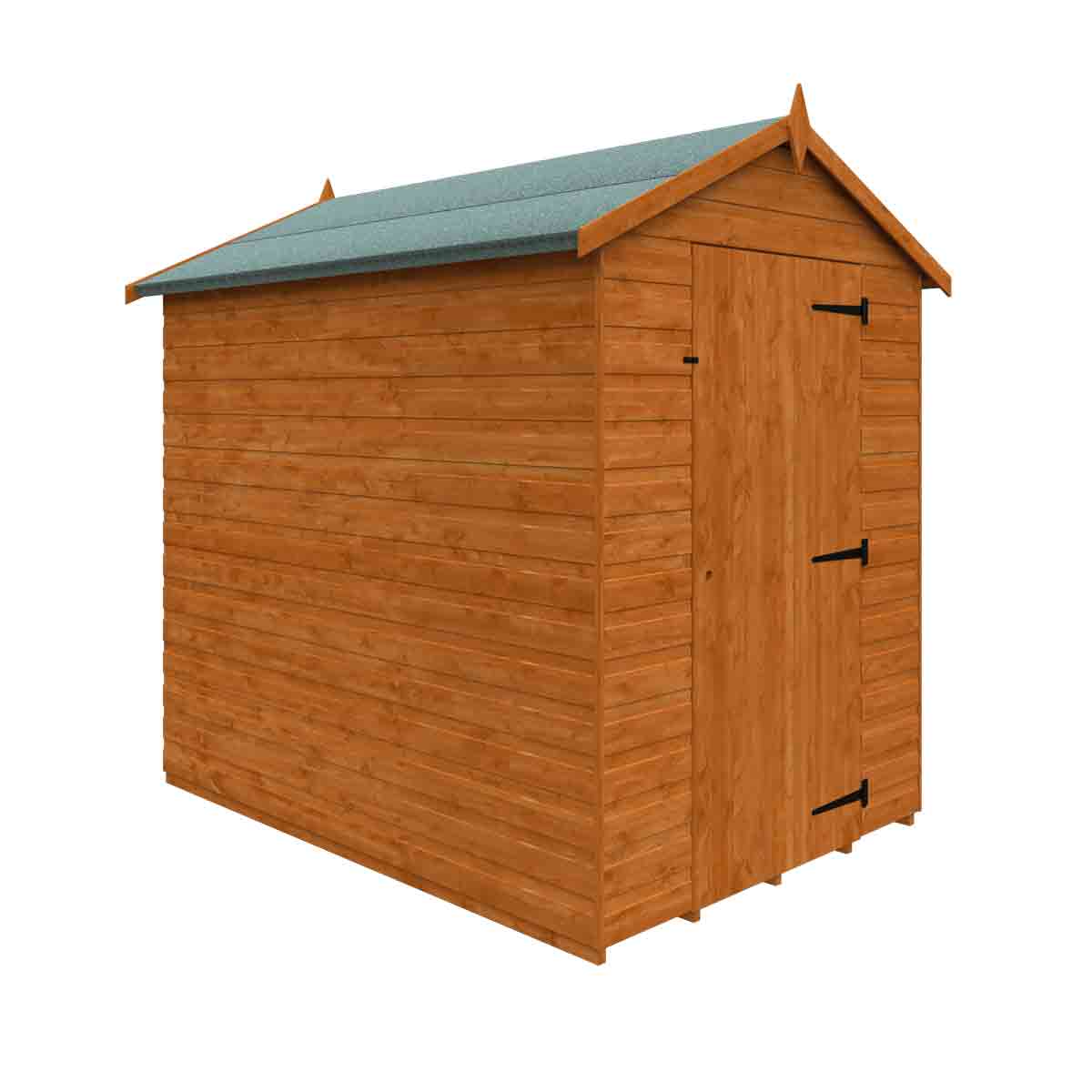 A traditional style garden shed with plenty of light and headroom in a vast range of sizes. The door will go on either end for flexibility. You must ensure that this garden building is assembled strictly in accordance with the assembly instructions that are provided and is installed on a firm and level base constructed from a suitably durable material. The garden building should be treated shortly after assembly, both externally and internally, with a good quality wood preserver and treated with a water-resistant treatment. Treatment should be reapplied annually to prolong the life of your building. All glazing units must be sealed, inside and out with silicone or other watertight solution of your choice (not supplied). Images and photos of products are provided for illustrative purposes only. Please note that product colours can vary slightly due to the digital photography process and variations in individual user monitor settings.
