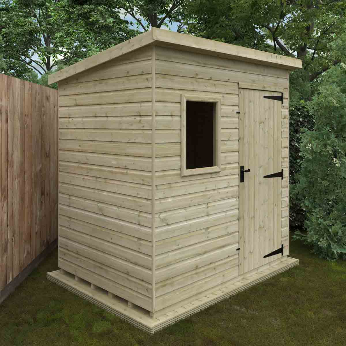 Based on the popular pent building this pressure treated version has thicker cladding and framing and comes as standard with joiner made windows and doors making it the ultimate pent shed. You must ensure that this garden building is assembled strictly in accordance with the assembly instructions that are provided and is installed on a firm and level base constructed from a suitably durable material. The garden building should be treated shortly after assembly, both externally and internally, with a good quality water-resistant treatment. Treatment should be reapplied annually to prolong the life of your building. All glazing units must be sealed, inside and out with silicone or other watertight solution of your choice (not supplied). Images and photos of products are provided for illustrative purposes only. Please note that product colours can vary slightly due to the digital photography process and variations in individual user monitor settings.