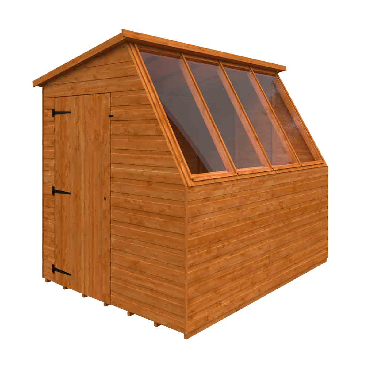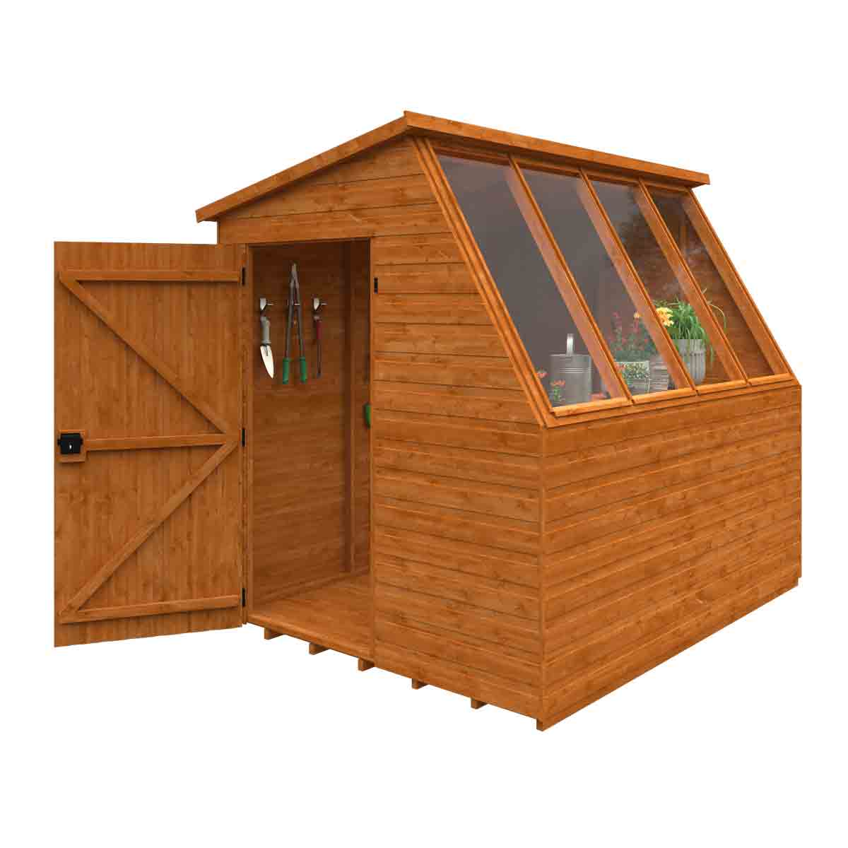 The Jewel multipurpose shed has a striking design which ensures maximum natural light is made available. It comes fitted with a useful full-length internal bench, mounted under the window. You must ensure that this garden building is assembled strictly in accordance with the assembly instructions that are provided and is installed on a firm and level base constructed from a suitably durable material. The garden building should be treated shortly after assembly, both externally and internally, with a good quality wood preserver and treated with a water-resistant treatment. Treatment should be reapplied annually to prolong the life of your building. All glazing units must be sealed, inside and out with silicone or other watertight solution of your choice (not supplied). Images and photos of products are provided for illustrative purposes only. Please note that product colours can vary slightly due to the digital photography process and variations in individual user monitor settings.