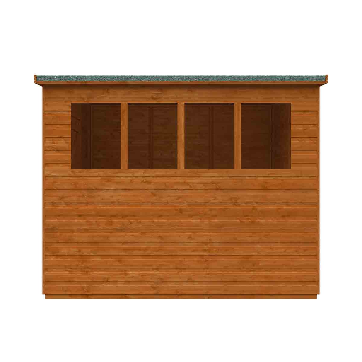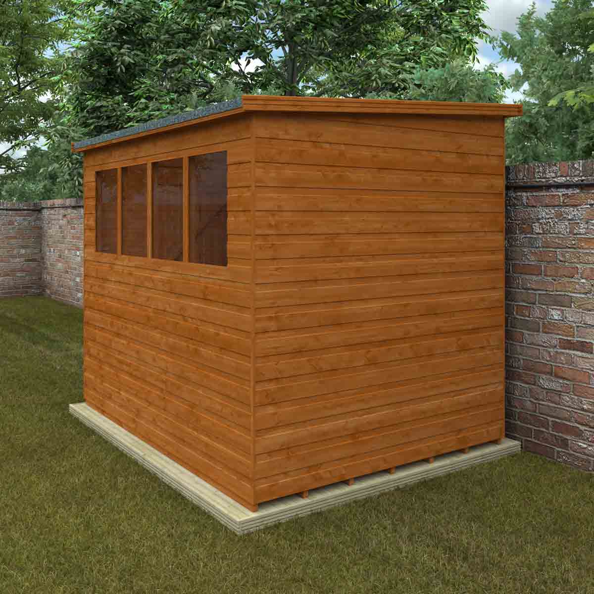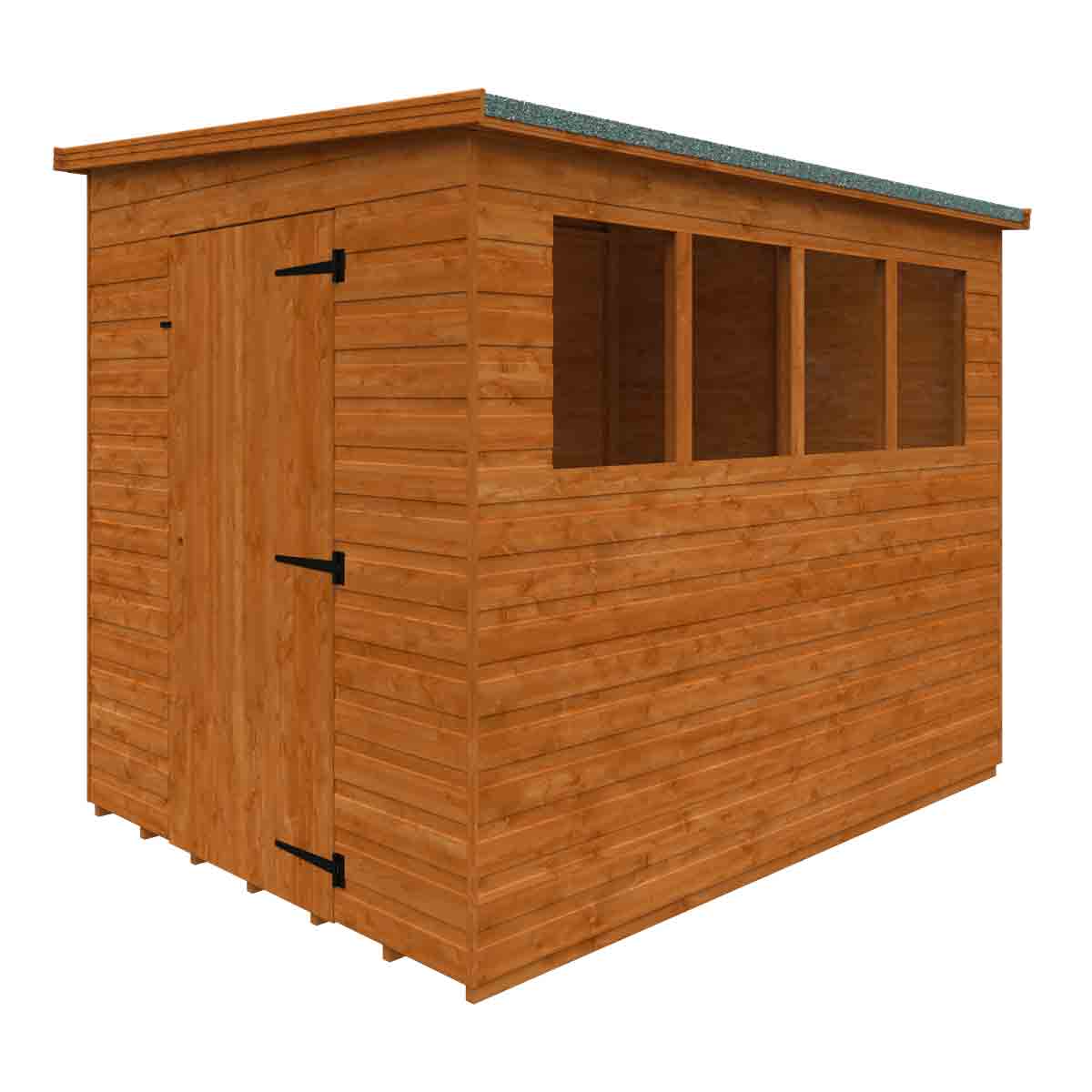 The Shiplap Lean To Pent shed is a popular variation of the classic styled pent shed, with the door in the gable end. Rest assured that the building meets our highest quality standards and comes in 12mm finished shiplap tongue and groove cladding. Also supplied with the shed is a lock and key as standard for added security. The benefits of our Lean-To sheds are the extra high eaves, allowing maximum storage to be achieved in the minimum of space. Added with this is the rounded and finished framework (28x44mm) giving strength and a quality finish to this Lean To Pent Shed. Supplied as standard is heavy duty black mineral roofing felt for additional durability. All fixings for construction and the necessary glazing are provided as well