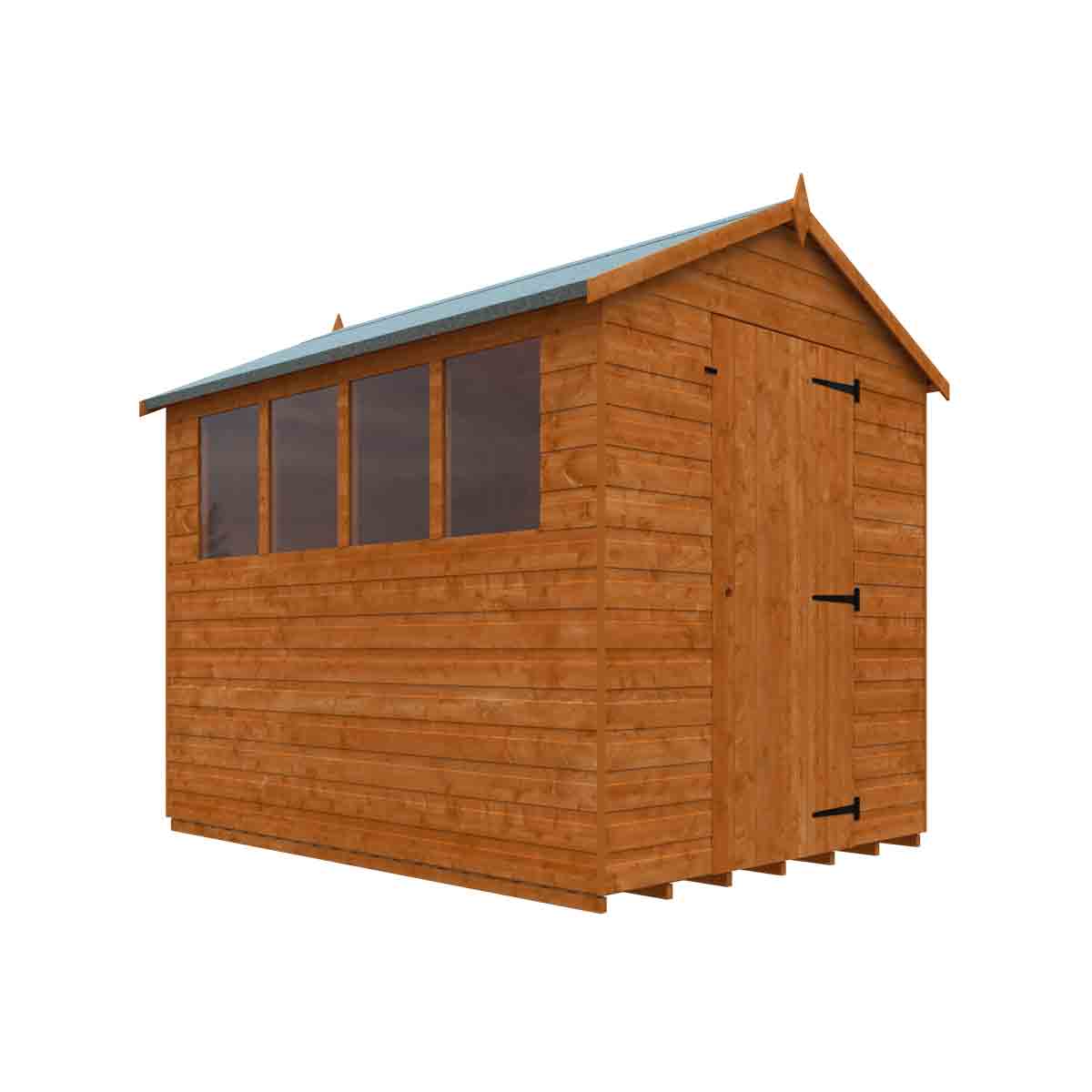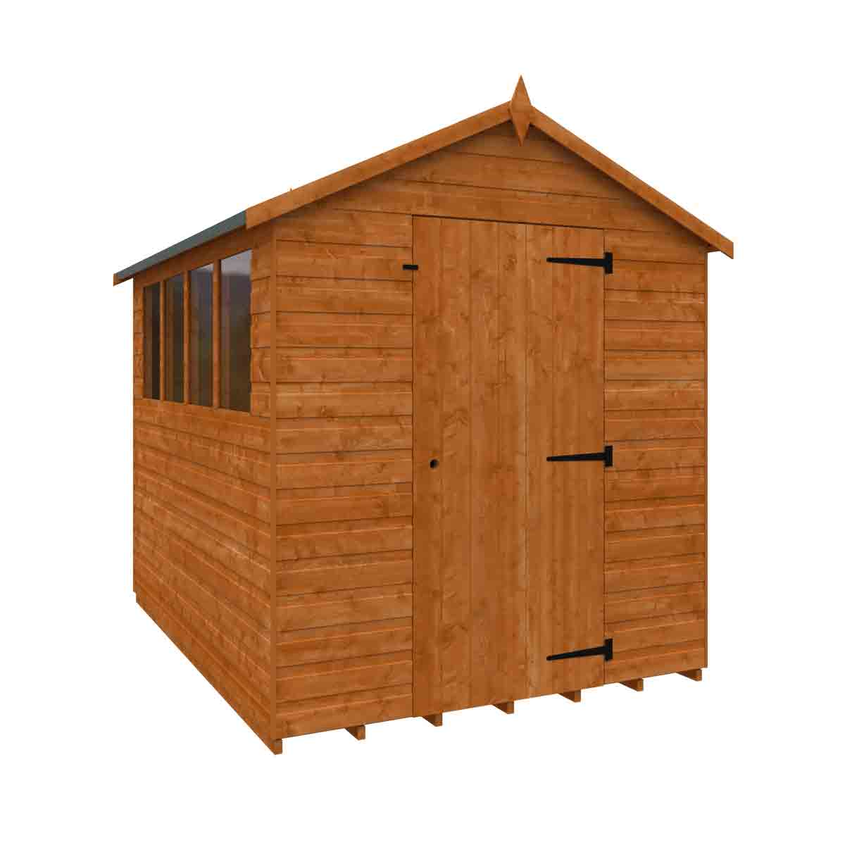 A traditional style garden shed with plenty of light and headroom in a vast range of sizes. The door will go on either end and the windows can be put on either side for flexibility. You must ensure that this garden building is assembled strictly in accordance with the assembly instructions that are provided and is installed on a firm and level base constructed from a suitably durable material. The garden building should be treated shortly after assembly, both externally and internally, with a good quality wood preserver and treated with a water-resistant treatment. Treatment should be reapplied annually to prolong the life of your building. All glazing units must be sealed, inside and out with silicone or other watertight solution of your choice (not supplied). Images and photos of products are provided for illustrative purposes only. Please note that product colours can vary slightly due to the digital photography process and variations in individual user monitor settings.