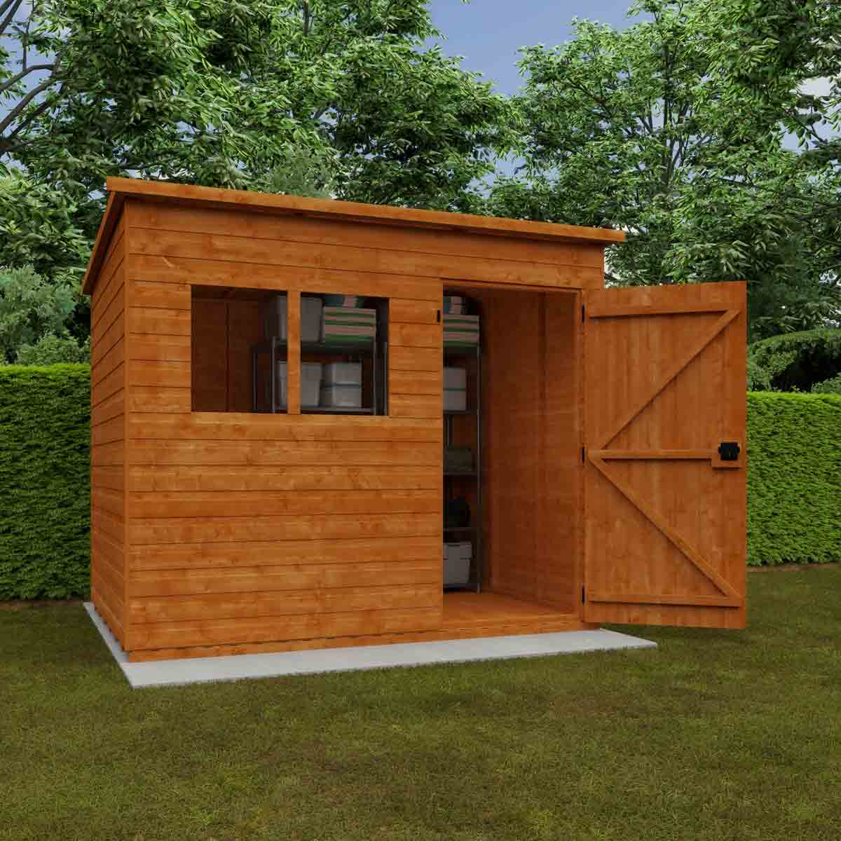 The Super Pent shed has a modern practical design. It can be made in various sizes, allowing for design flexibility. You must ensure that this garden building is assembled strictly in accordance with the assembly instructions that are provided and is installed on a firm and level base constructed from a suitably durable material. The garden building should be treated shortly after assembly, both externally and internally, with a good quality wood preserver and treated with a water-resistant treatment. Treatment should be reapplied annually to prolong the life of your building. All glazing units must be sealed, inside and out with silicone or other watertight solution of your choice (not supplied). Images and photos of products are provided for illustrative purposes only. Please note that product colours can vary slightly due to the digital photography process and variations in individual user monitor settings.9
