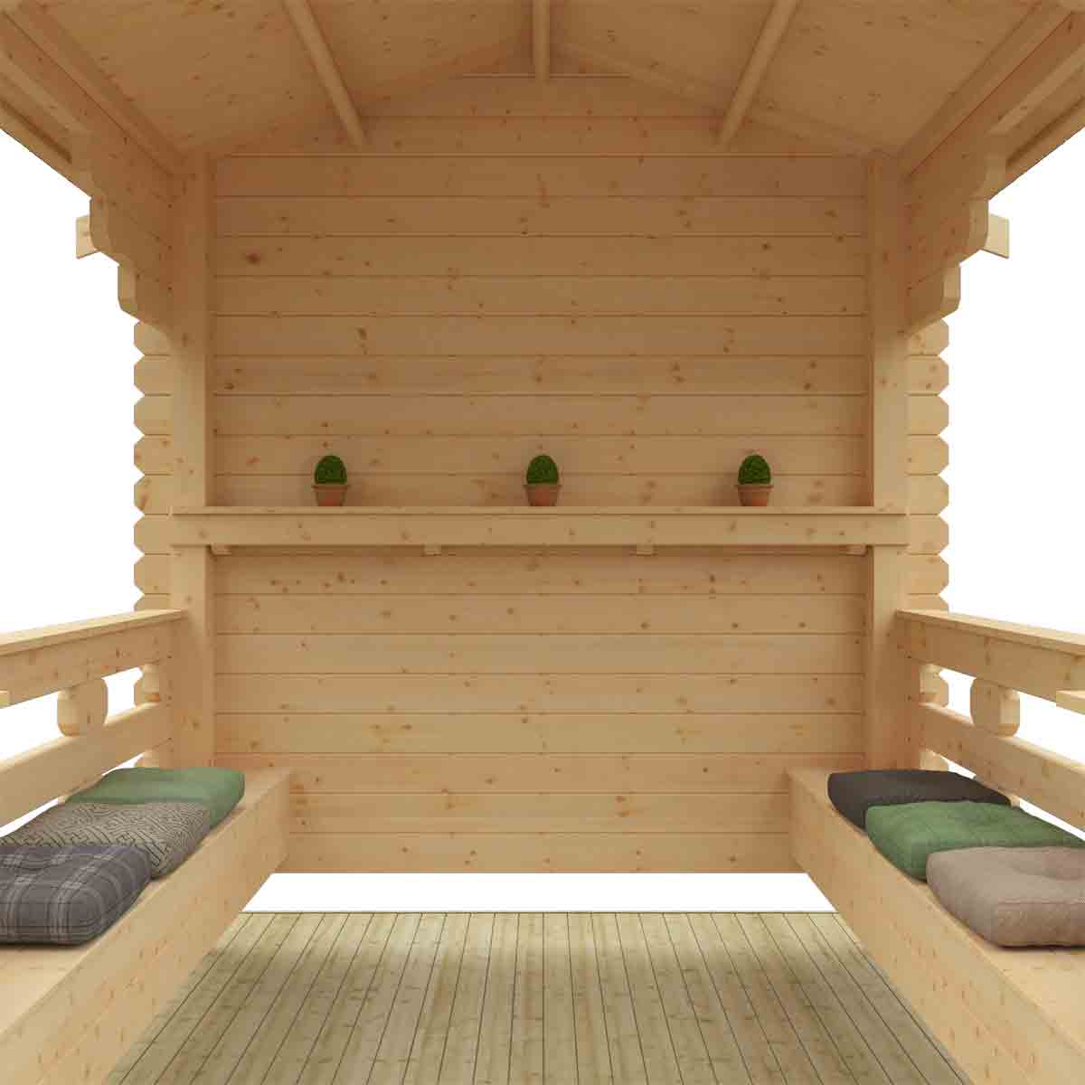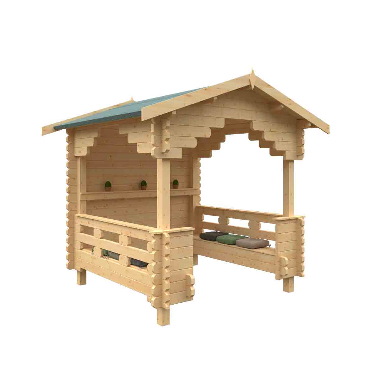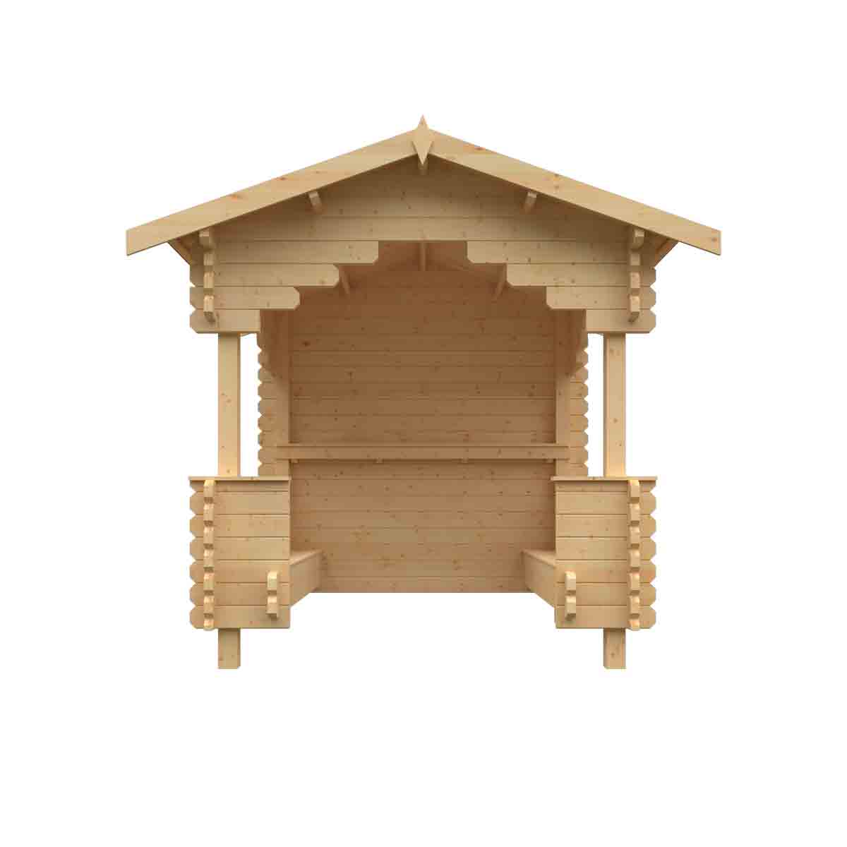 Whether it’s for a pub, a park or just a private garden the Garden Shelter is the ideal building for people to sit, relax, congregate and enjoy themselves. It’s constructed from the finest quality 44mm interlocking logs and comes feature packed with two integral heavy duty bench seats and an in-built wall shelf. It has also been manufactured to satisfy the legal requirements for use as an outdoor smoking shelter. You must ensure that this garden building is assembled strictly in accordance with the assembly instructions that are provided and is installed on a firm and level base constructed from a suitably durable material. The garden building should be treated shortly after assembly, both externally and internally, with a good quality wood preserver and treated with a water-resistant treatment. Treatment should be reapplied annually to prolong the life of your building. Images and photos of products are provided for illustrative purposes only. Please note that product colours can vary slightly due to the digital photography process and variations in individual user monitor settings.