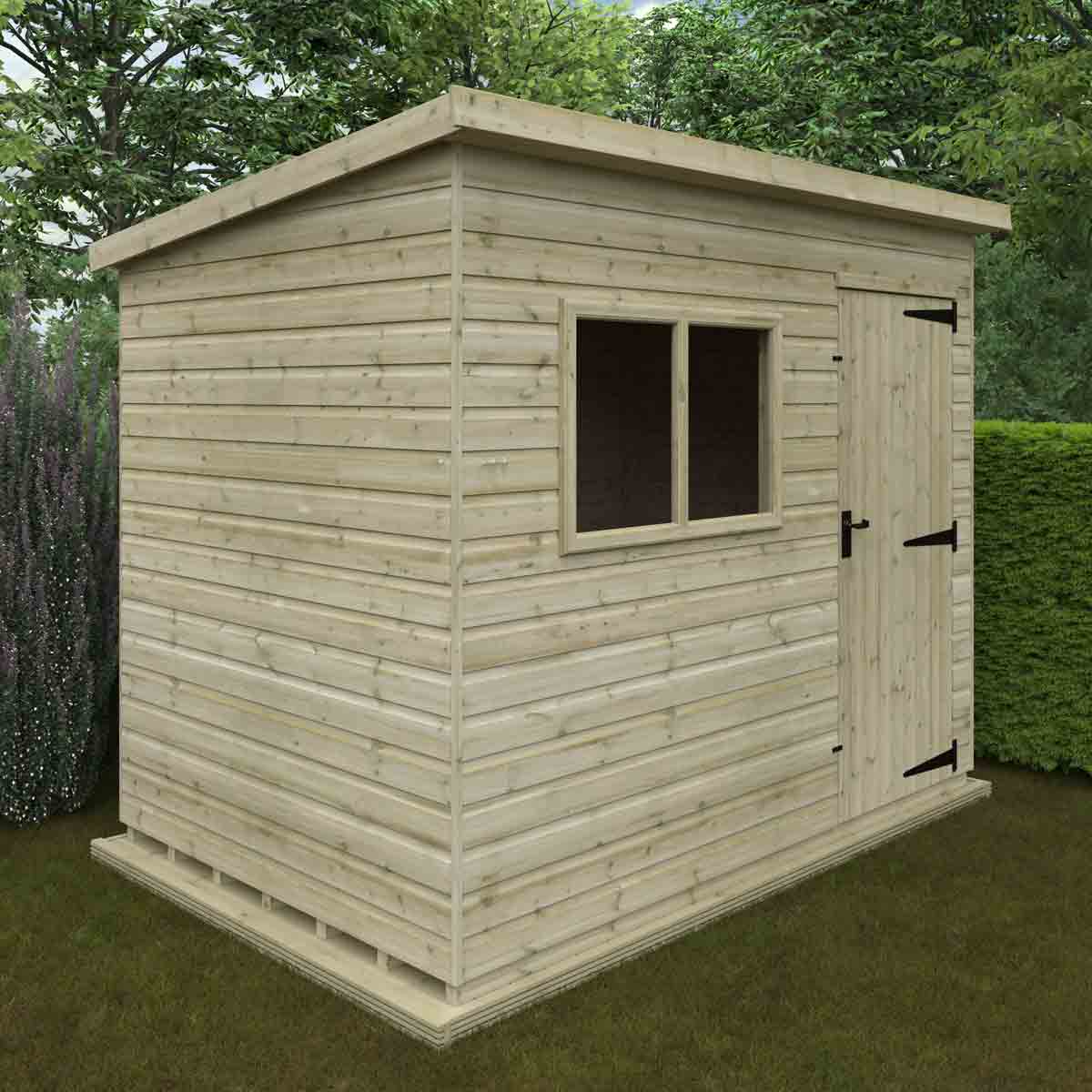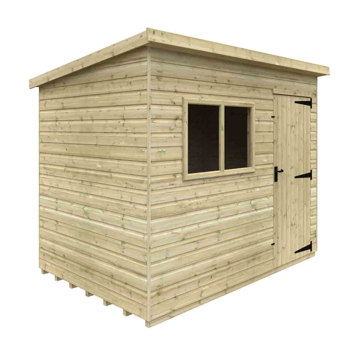 Based on the popular pent building this pressure treated version has thicker cladding and framing and comes as standard with joiner made windows and doors making it the ultimate pent shed. You must ensure that this garden building is assembled strictly in accordance with the assembly instructions that are provided and is installed on a firm and level base constructed from a suitably durable material. The garden building should be treated shortly after assembly, both externally and internally, with a good quality water-resistant treatment. Treatment should be reapplied annually to prolong the life of your building. All glazing units must be sealed, inside and out with silicone or other watertight solution of your choice (not supplied). Images and photos of products are provided for illustrative purposes only. Please note that product colours can vary slightly due to the digital photography process and variations in individual user monitor settings.