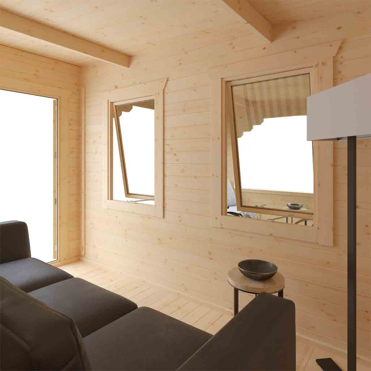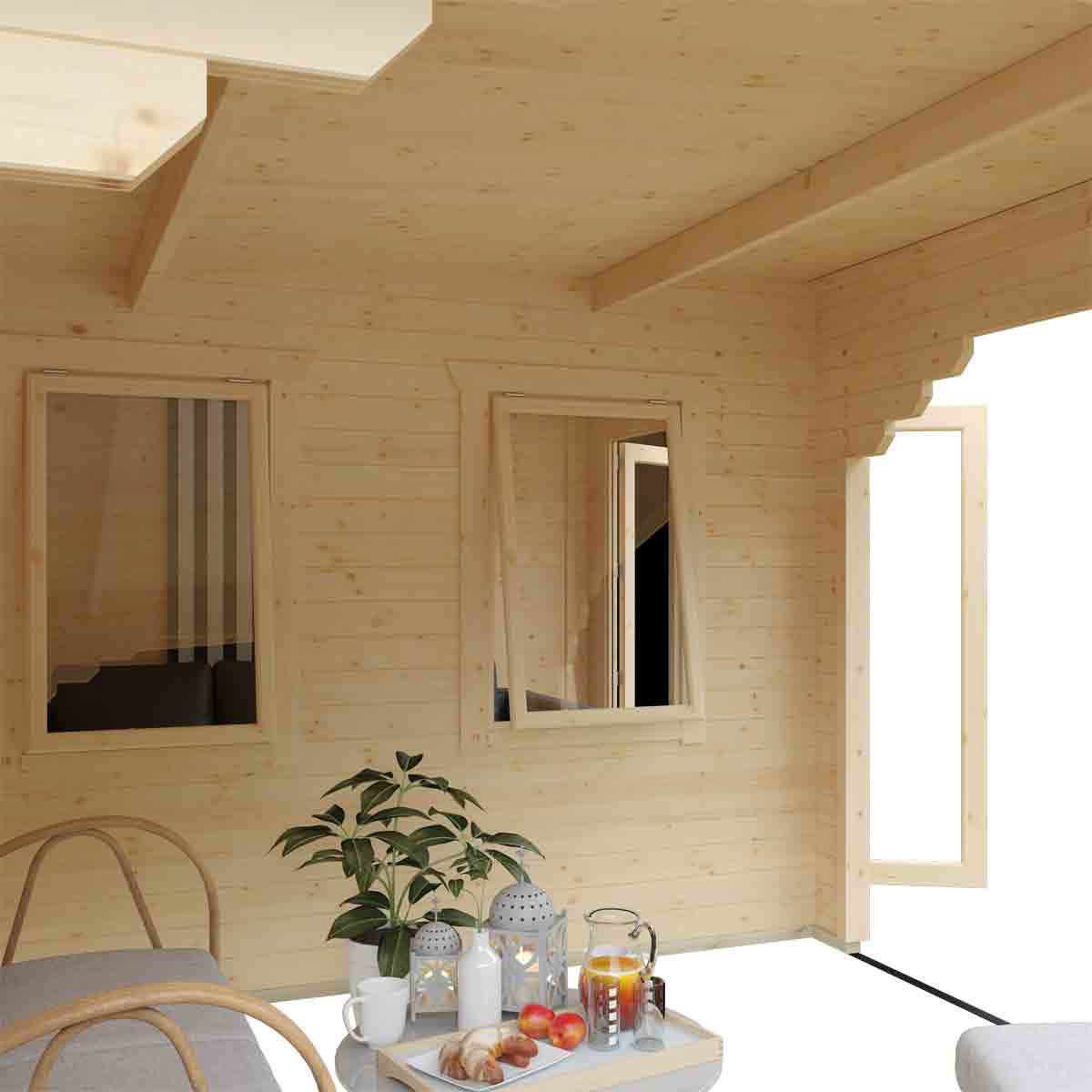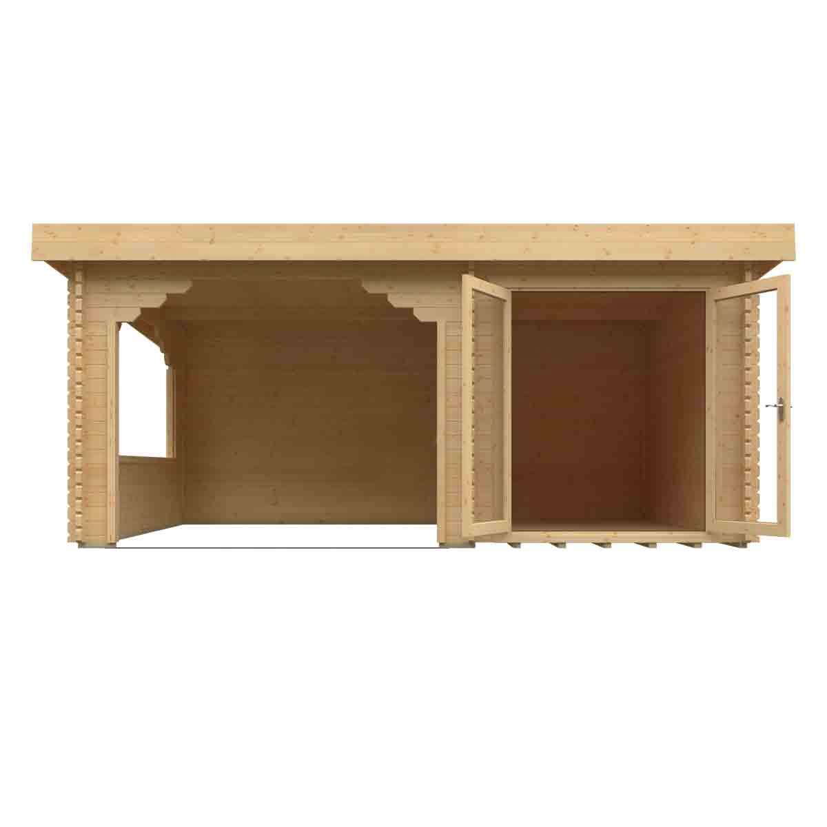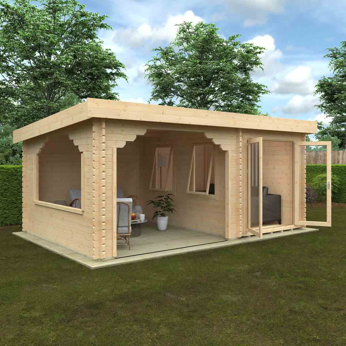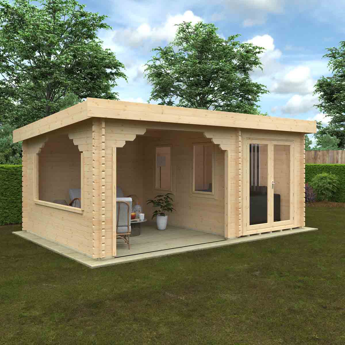 The Payton Log Cabin is a standout example of a stylish and functional garden building. Crafted in Britain, this log cabin seamlessly blends indoor and outdoor spaces, providing excellent shelter from sun and rain alike. With its eye-catching design, the Payton makes a bold statement in any garden while offering unparalleled practicality. Whether you want a spot for a hot tub, barbecue, or a serene retreat to relax and unwind, the Payton Log Cabin is the perfect solution for your outdoor needs. There's not just a wide range of sizes to enjoy - but you can also choose the internal size combination of the garden room and outdoor shelter, to find the perfect balance for your needs.