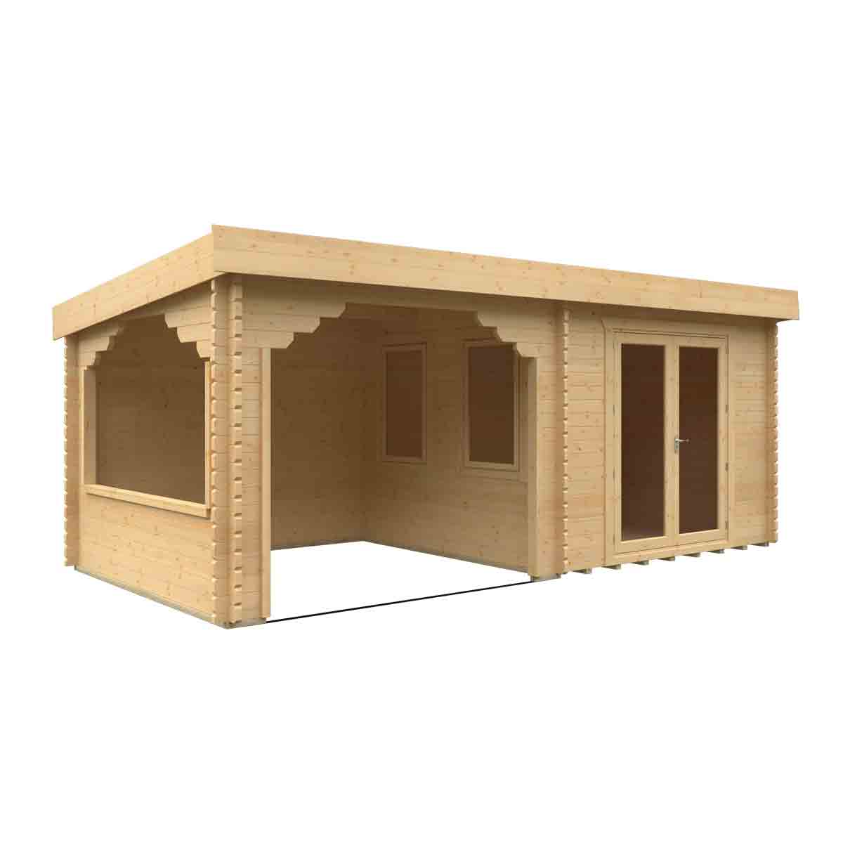 The Payton Log Cabin is a standout example of a stylish and functional garden building. Crafted in Britain, this log cabin seamlessly blends indoor and outdoor spaces, providing excellent shelter from sun and rain alike. With its eye-catching design, the Payton makes a bold statement in any garden while offering unparalleled practicality. Whether you want a spot for a hot tub, barbecue, or a serene retreat to relax and unwind, the Payton Log Cabin is the perfect solution for your outdoor needs. There's not just a wide range of sizes to enjoy - but you can also choose the internal size combination of the garden room and outdoor shelter, to find the perfect balance for your needs.
