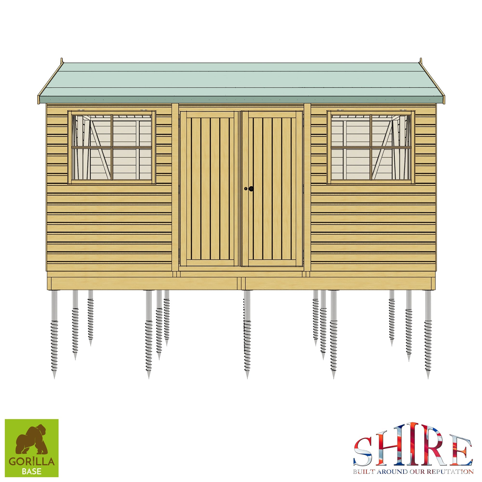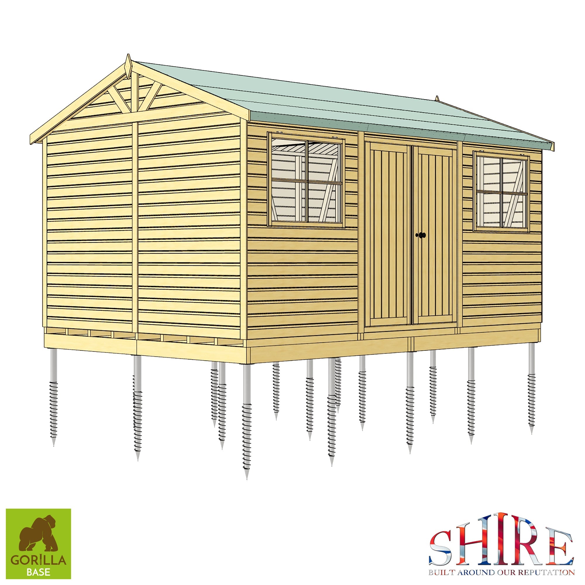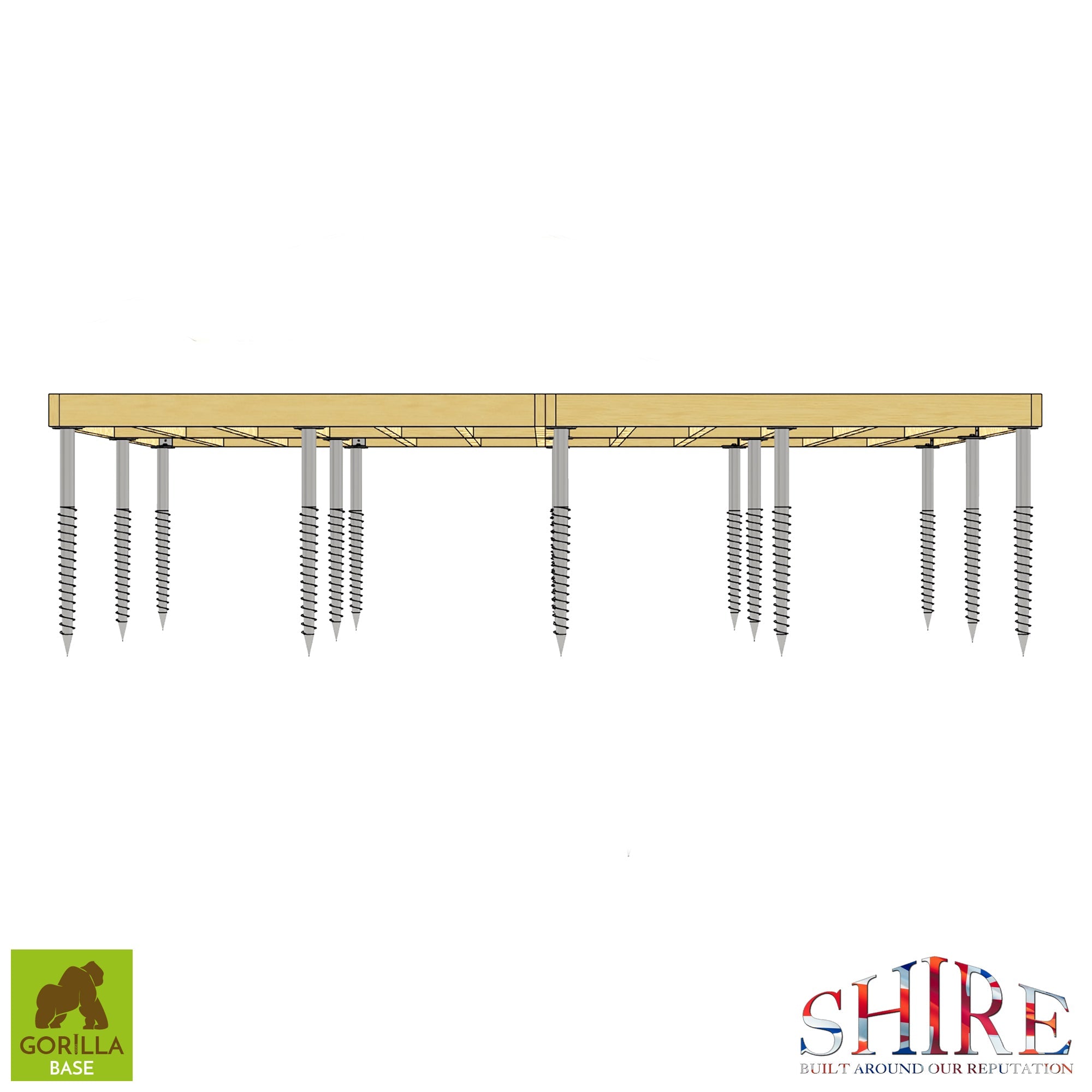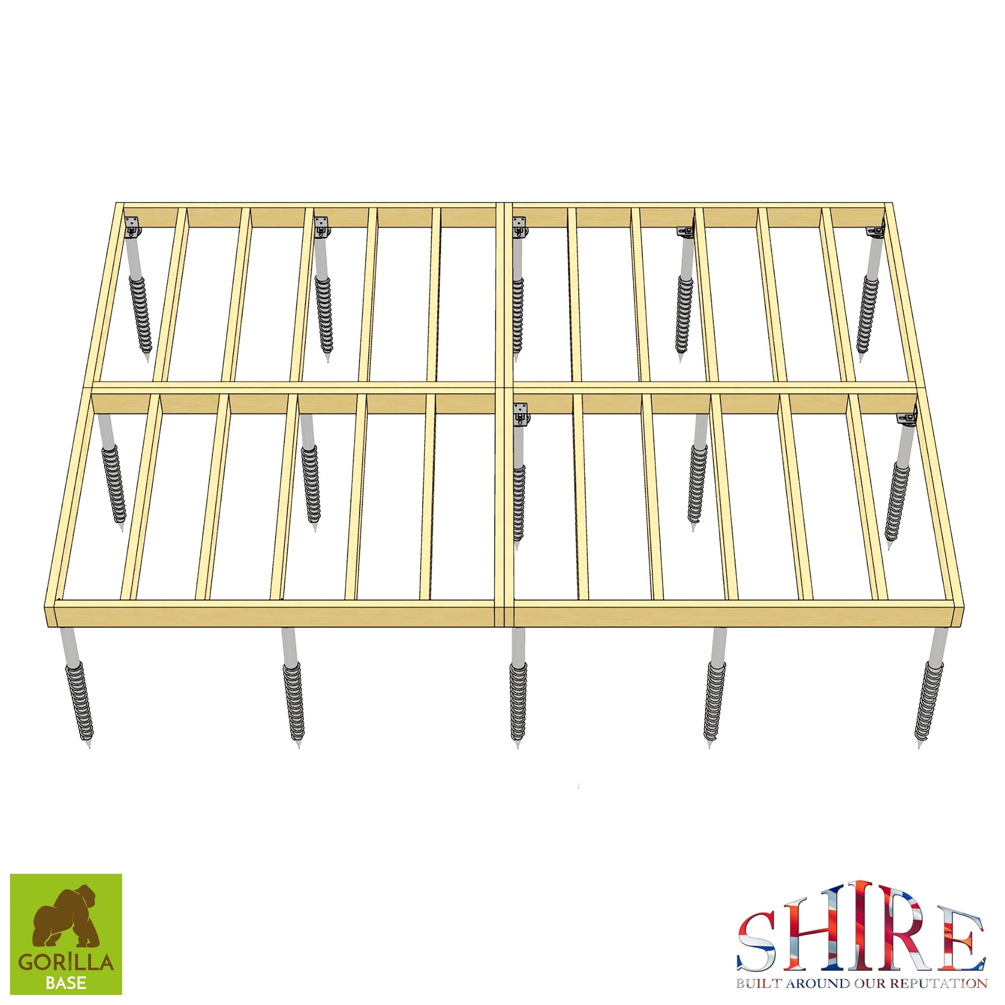 The base must be of solid construction. Should you not have a solid concrete base, we recommend a Gorilla Base. Our Gorilla Base Ground Screw System, uses 1 m long, galvanised screws that come with a lifetime guarantee constructed from 6×2 pressure treated structural grade timber. Not only is this base a more eco-friendly alternative to concrete, but offers the best solution to increase the longevity and functionality of your building, whilst not needing to heavily excavate your garden!