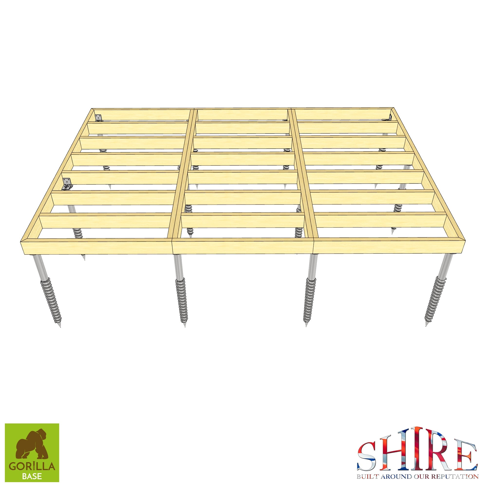 The base must be of solid construction. Should you not have a solid concrete base, we recommend a Gorilla Base. Our Gorilla Base Ground Screw System, uses 1 m long, galvanised screws that come with a lifetime guarantee constructed from 6×2 pressure treated structural grade timber. Not only is this base a more eco-friendly alternative to concrete, but offers the best solution to increase the longevity and functionality of your building, whilst not needing to heavily excavate your garden!