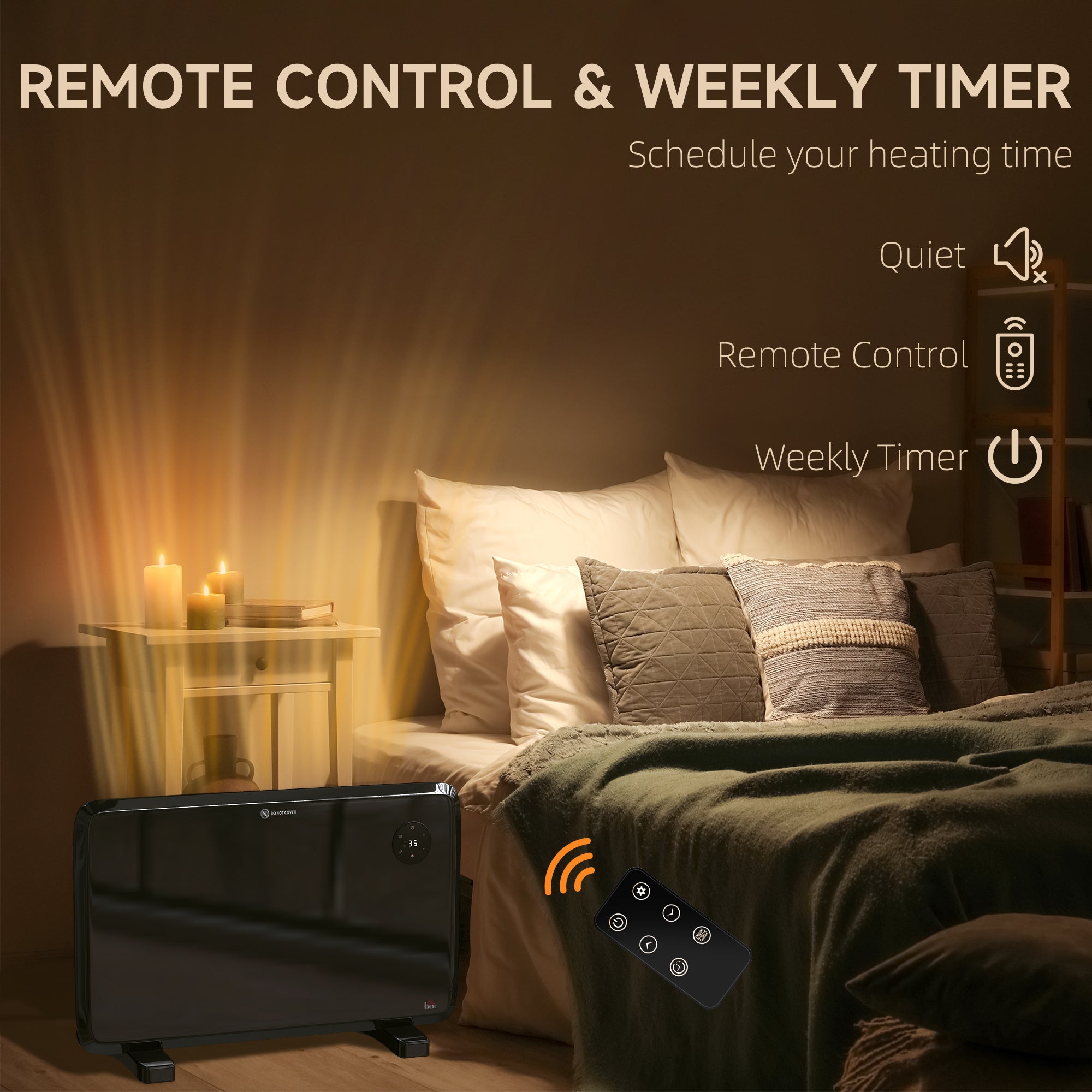 - Weekly timer allows you to schedule your heating time