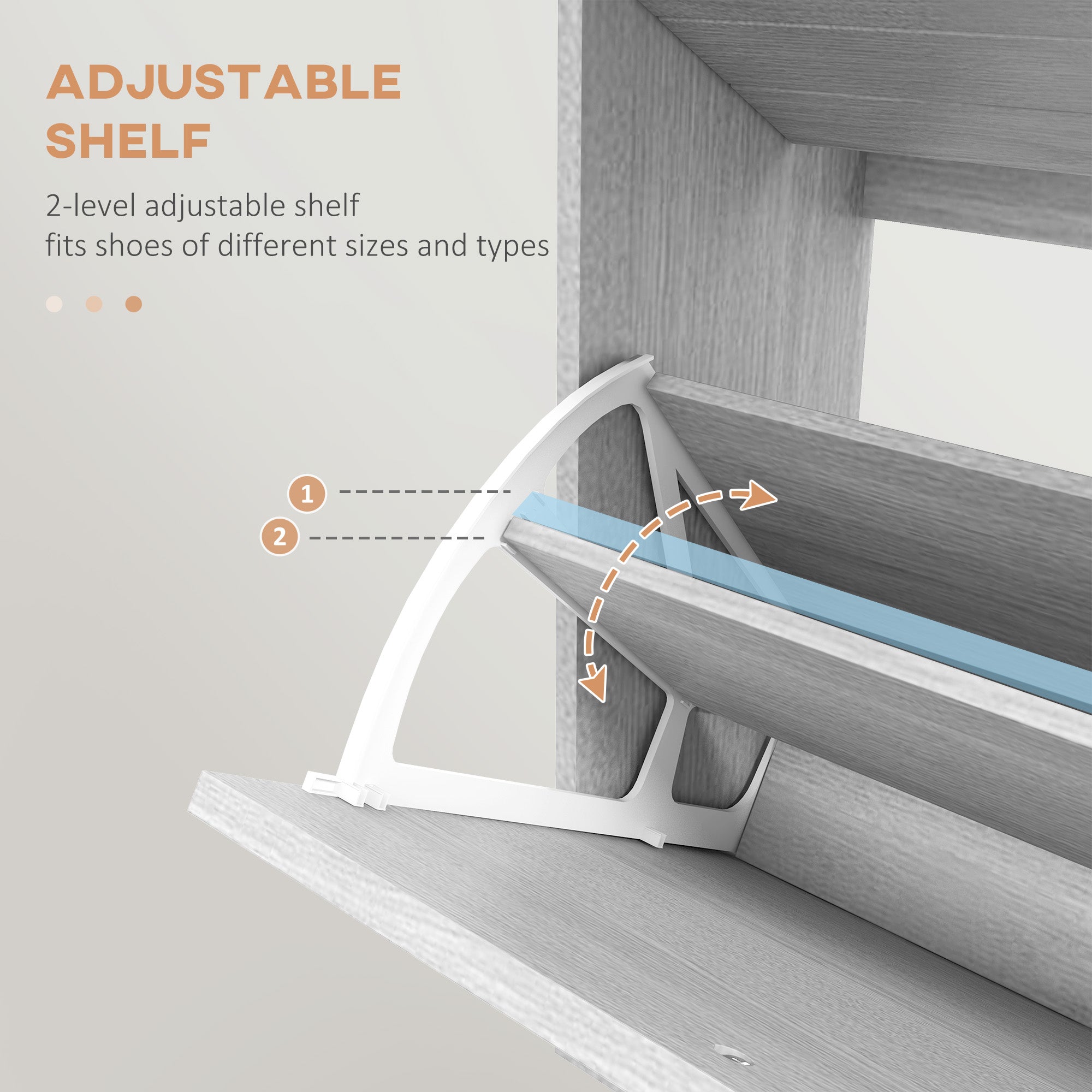 Made for the narrow spots, this HOMCOM slim shoe storage unit is here to keep the home clutter-free from shoes. Three flip drawers hold up to 12 shoe pairs - great for the household - or the individual shoe lover! Made from particle board, this shoe storage unit is solid and suitable for the everyday, with the paneled-door design giving it a modern look. Comes with anti-tipping straps to anchor to a wall safety.