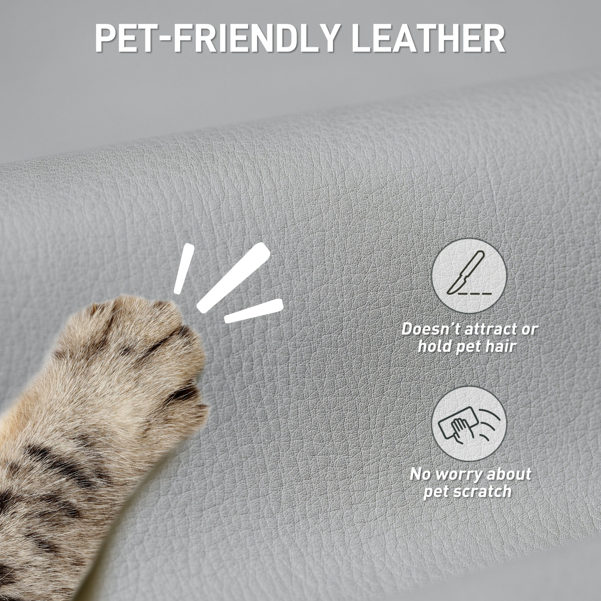 - Scratch-resistant pet-friendly leather. Smooth and stylish, always looks good. Is easy to wipe clean