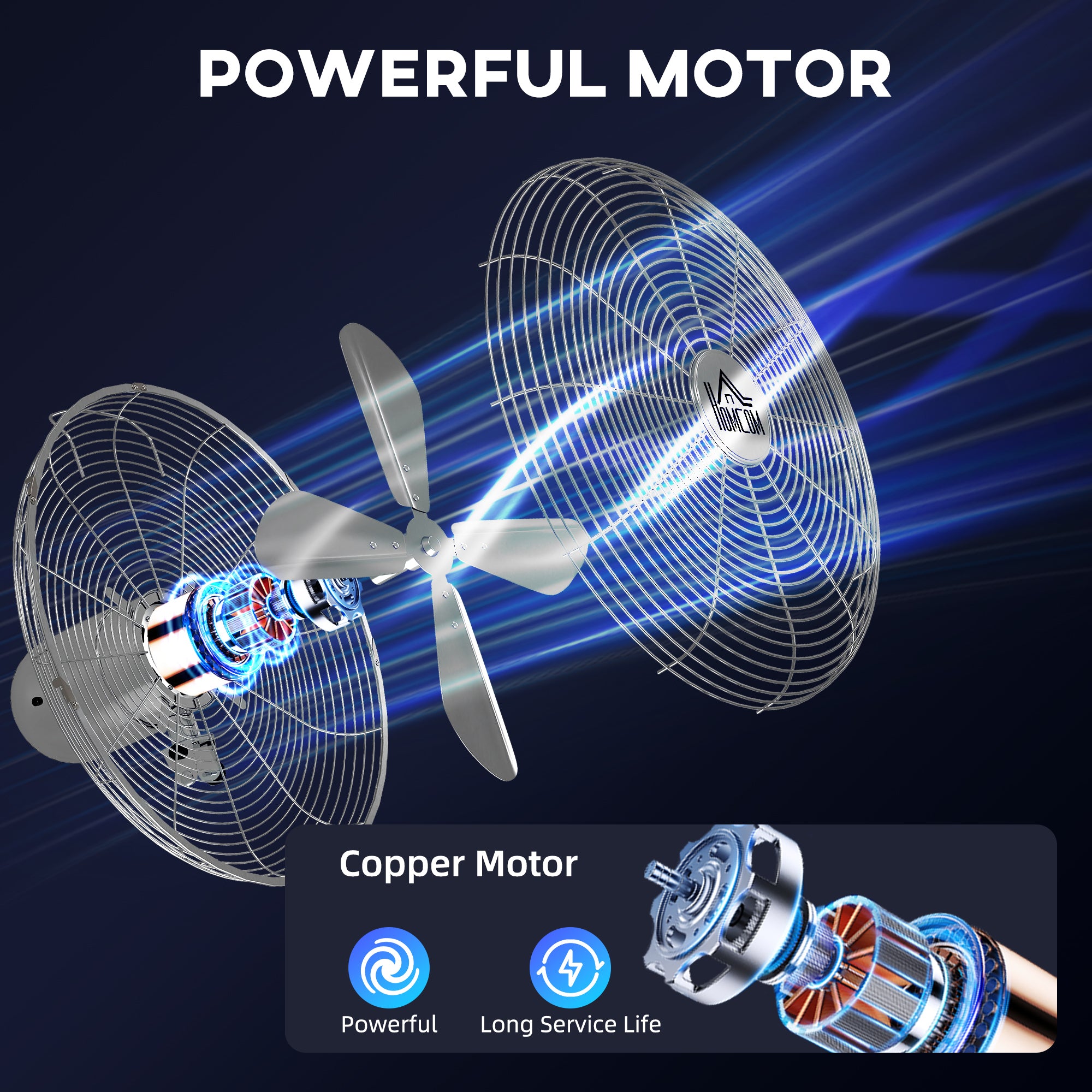 HOMCOM 16" Metal Pedestal Fan with Oscillating, Adjustable Height - Silver Tone