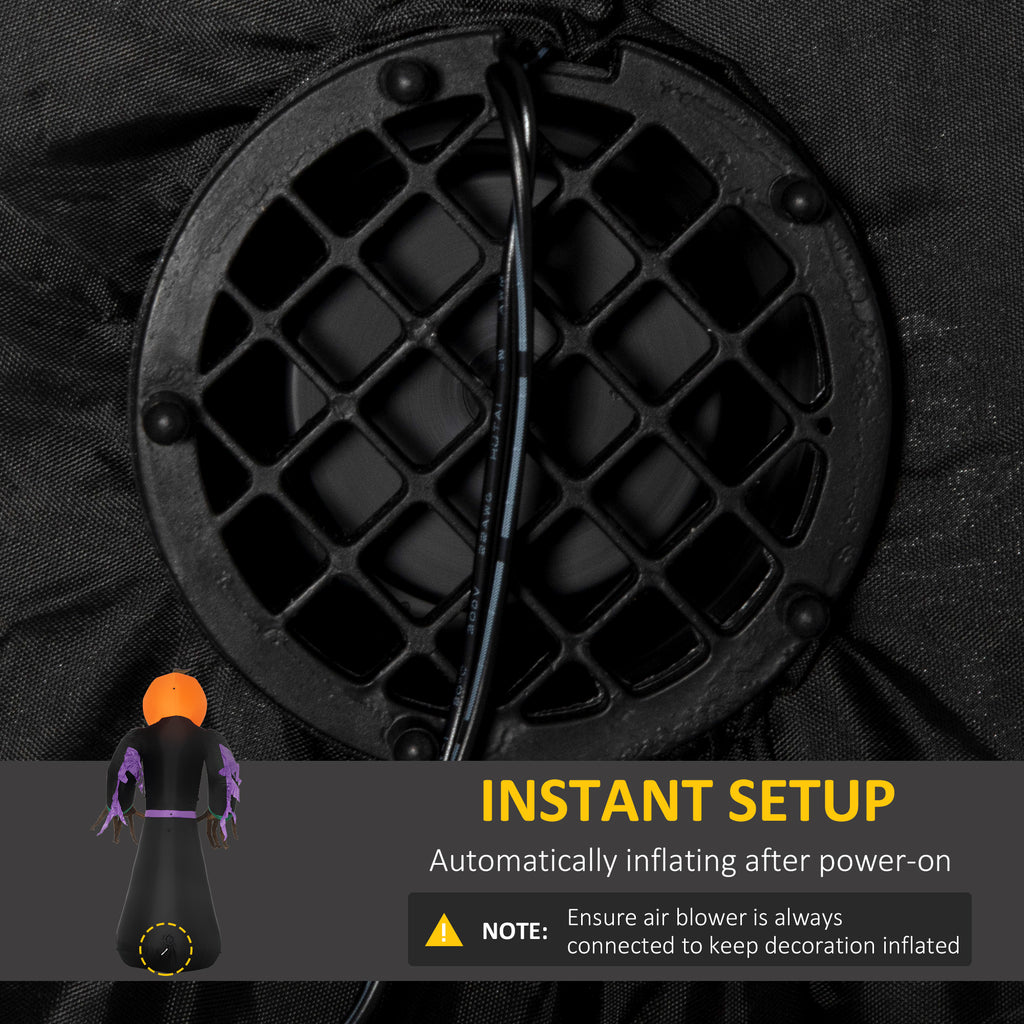 - 2.1m tall yard inflatable features a scary reaper with a pumpkin head