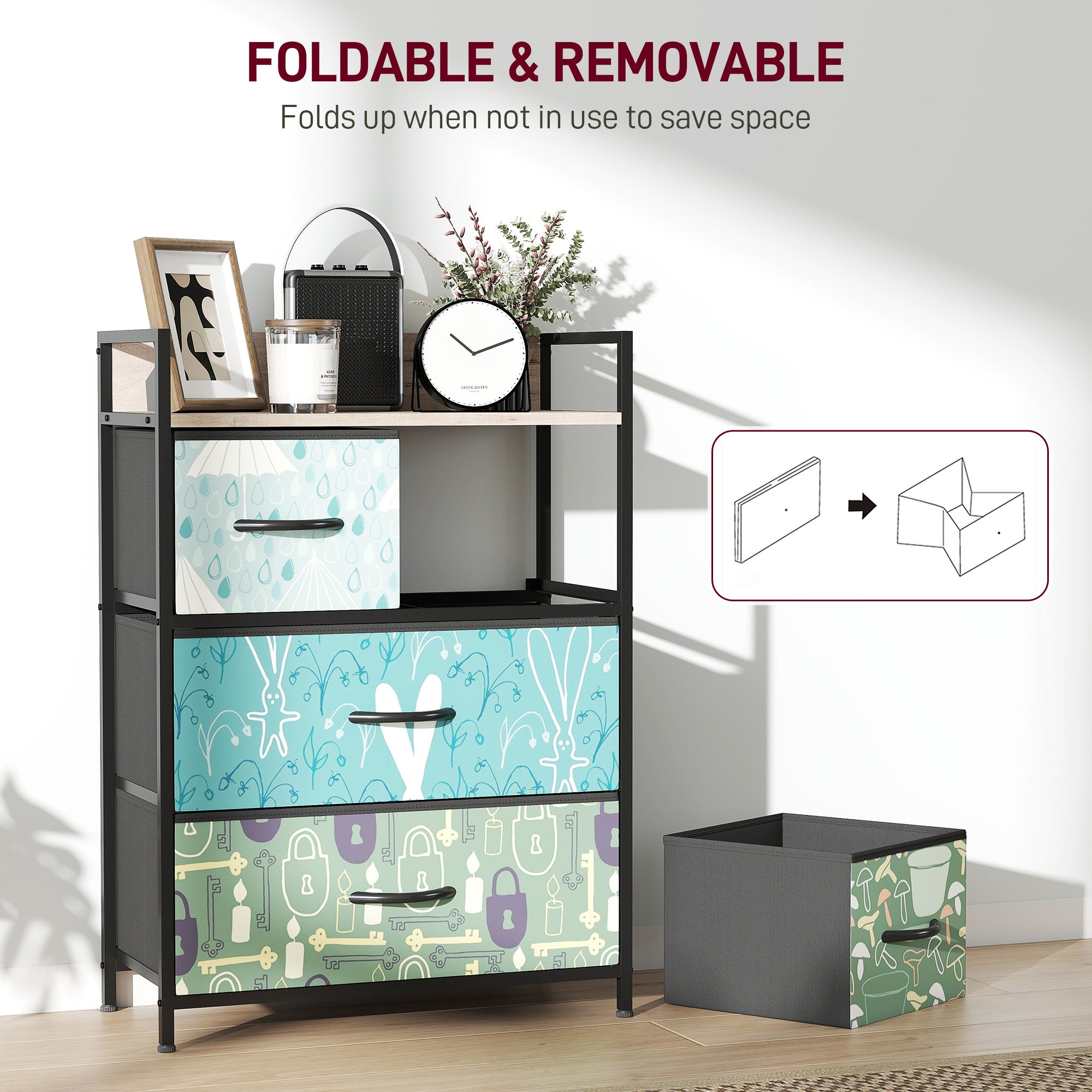 Transform your space with the HOMCOM chest of drawers, where style meets functionality! Adorned with exquisite patterns on each drawer panel, this bedroom drawers add a touch of elegance to any room. With four fabric drawers that are both removable and foldable, organising has never been easier. Great for bedrooms, living rooms, or home offices to keep your essentials tidy.
