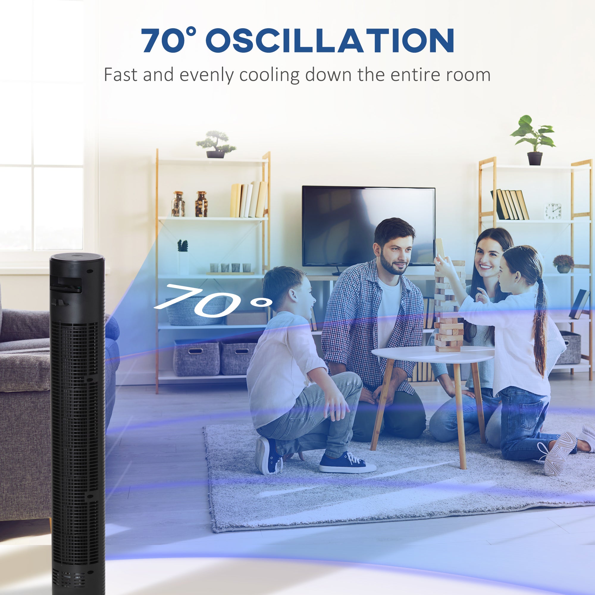 HOMCOM 46" Oscillating Tower Fan with Remote Control, 12H Timer, 3 Speed, 4 Modes, Quiet Cooling Fans, Electric Floor Standing Fan for Home Bedroom Office, Black