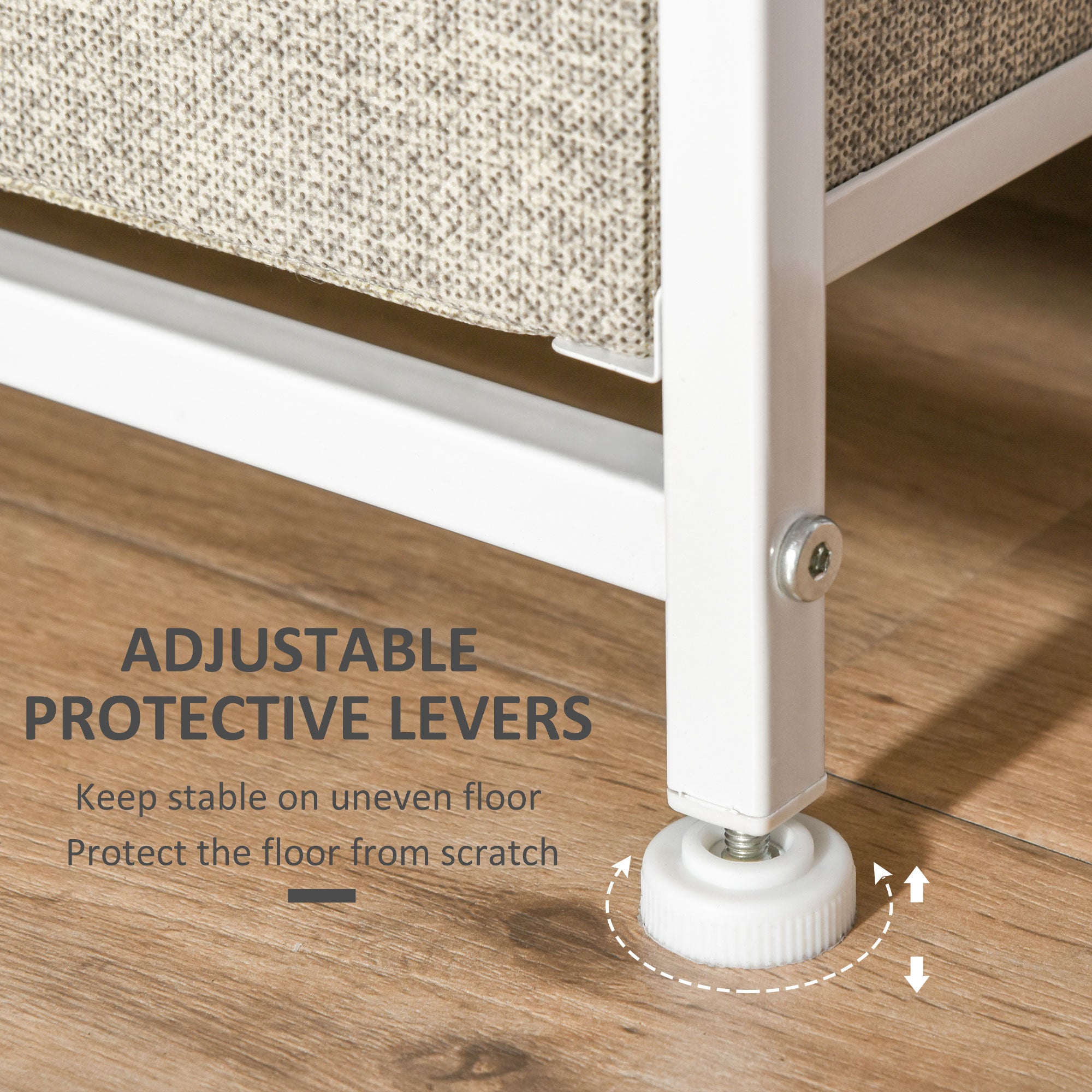 - Removable fabric drawers for easy storage of everyday items
