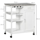 Organise your kitchen with our HOMCOM bar carts for the home. The frame, made from MDF, is stable and reliable for everyday use and features a drawer, two open shelves, a wine rack and a cupboard. A marble-effect tabletop of this rolling drink cart provides extra preparation room. A must-have companion in your home.