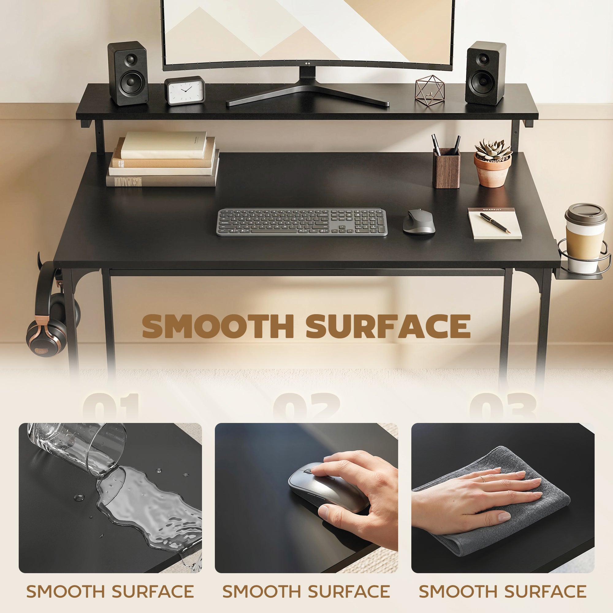 - Cup holder and headphone hook can be swapped to the left or right for easy access and a tidy setup