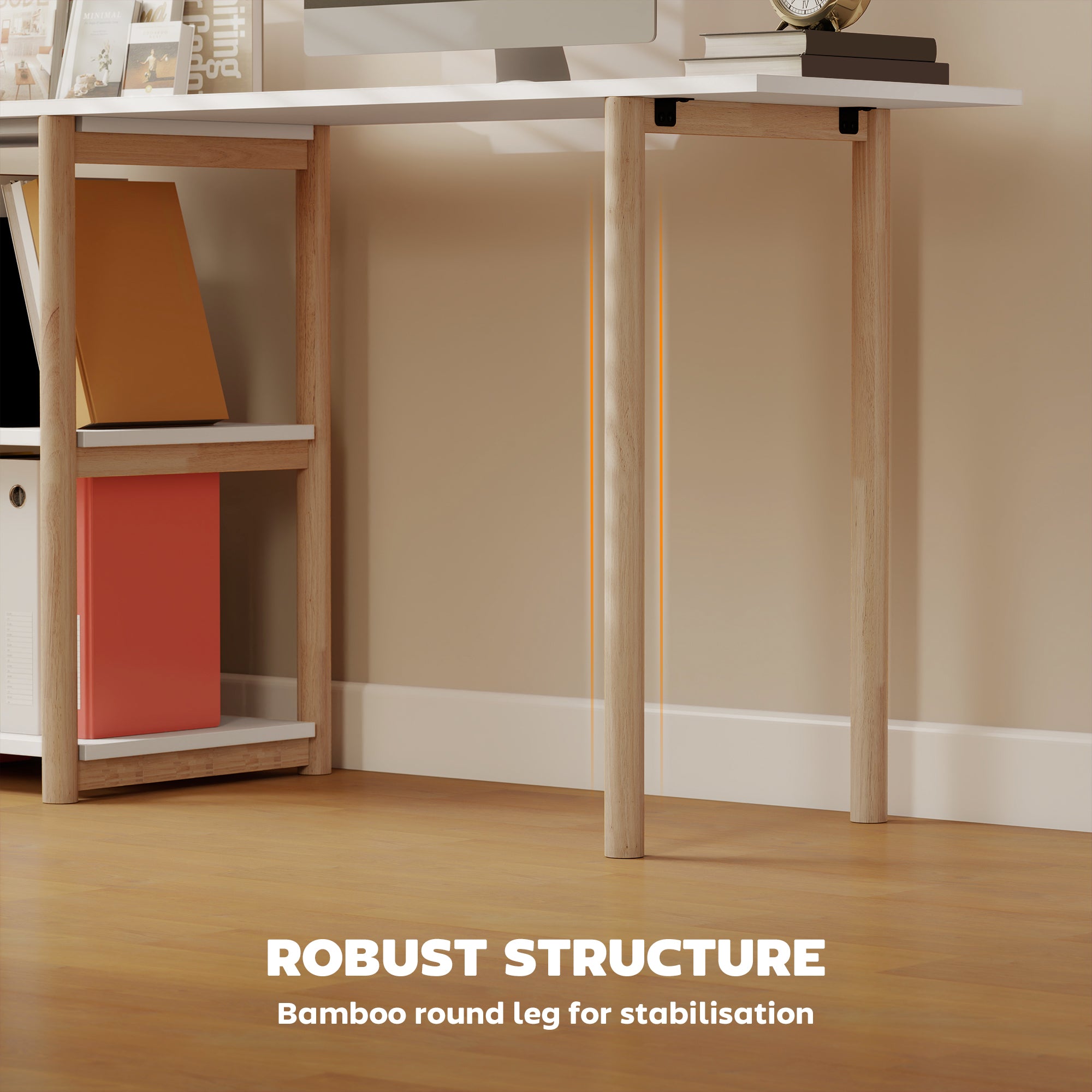 HOMCOM Computer Desk with Storage Shelves Modern Writing Desk Bamboo Frame for Home Office 150 cm White and Oak
