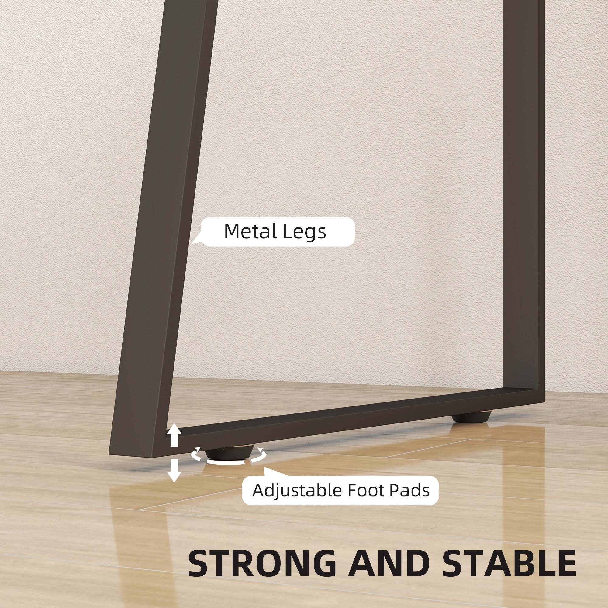 - Solid particle board, MDF and metal legs ensure durability