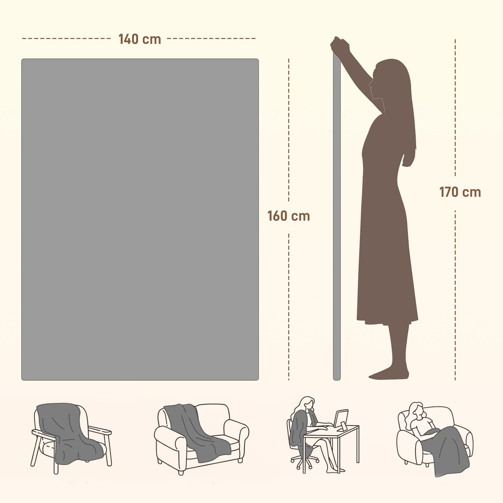 - Overall Dimension: 160L x 140W cm