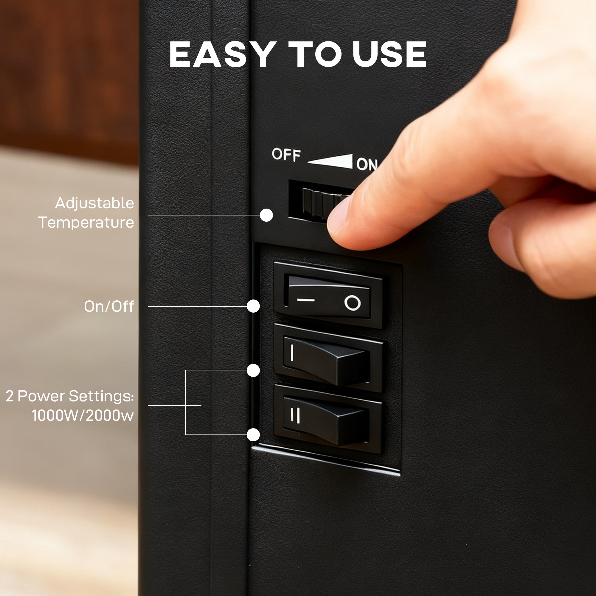 HOMCOM Electric Fireplace Stove Heater with 3D Flame Effect, 2000W/1000W, Freestanding Portable Fireplace with Adjustable Thermostat, 2 Heat Settings for Living Room, Black