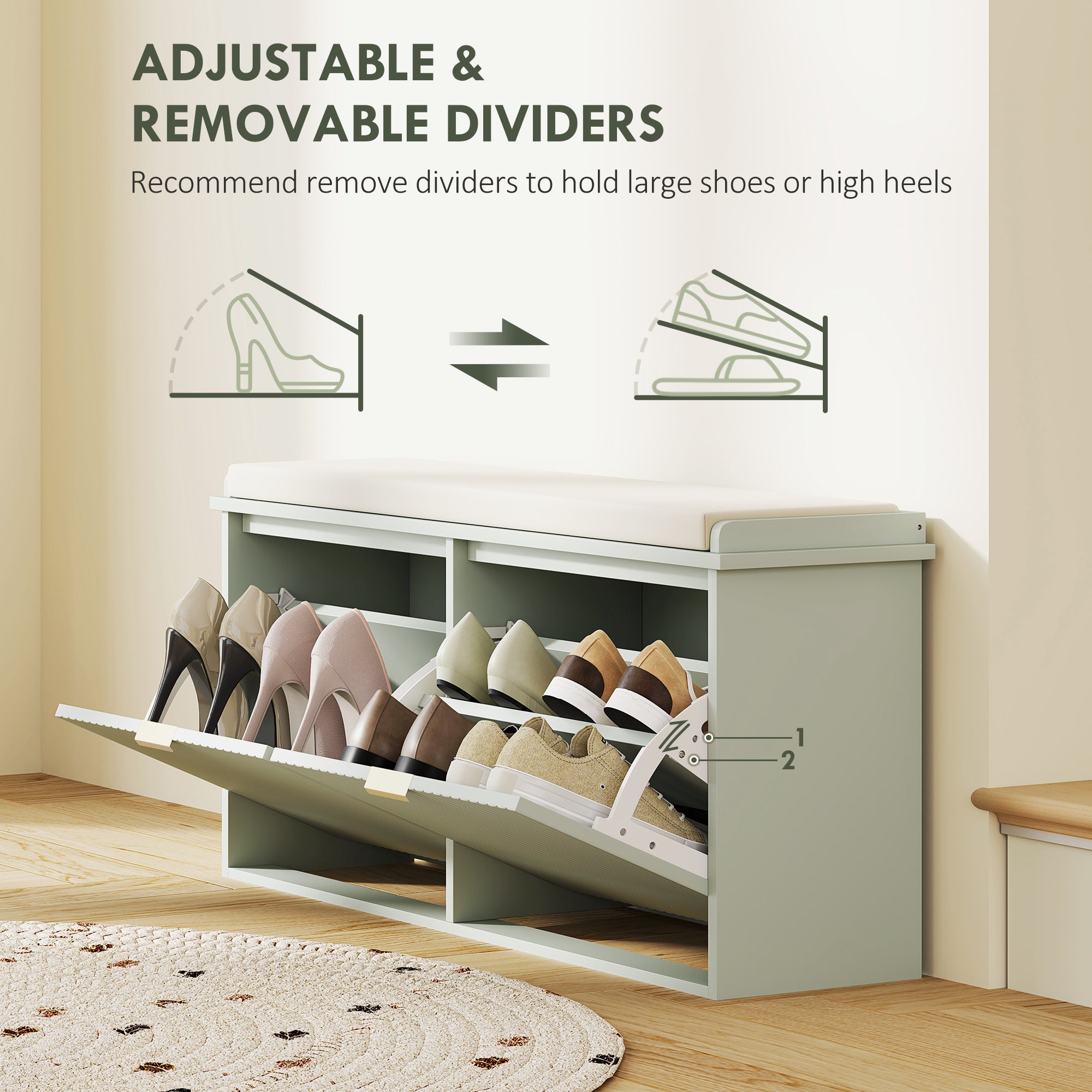 - A painted surface boosts appearance, durability, scratch resistance and makes the shoe cabinet easier to maintain
