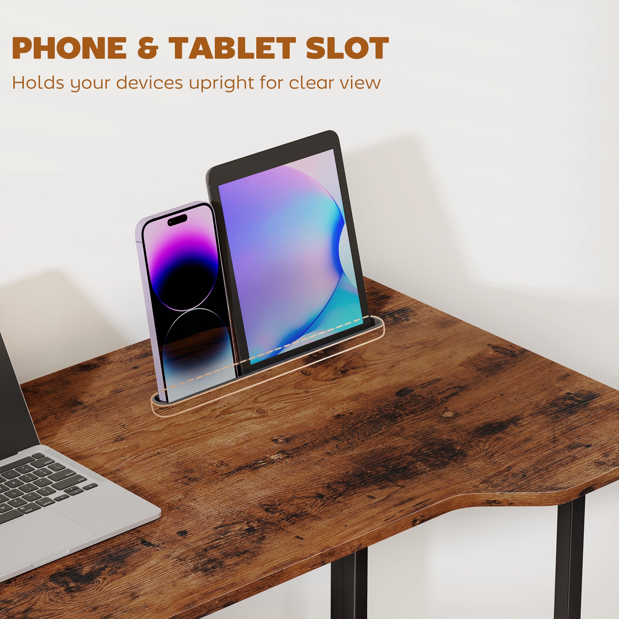 - Includes a tablet and phone slot to keep your digital devices organised