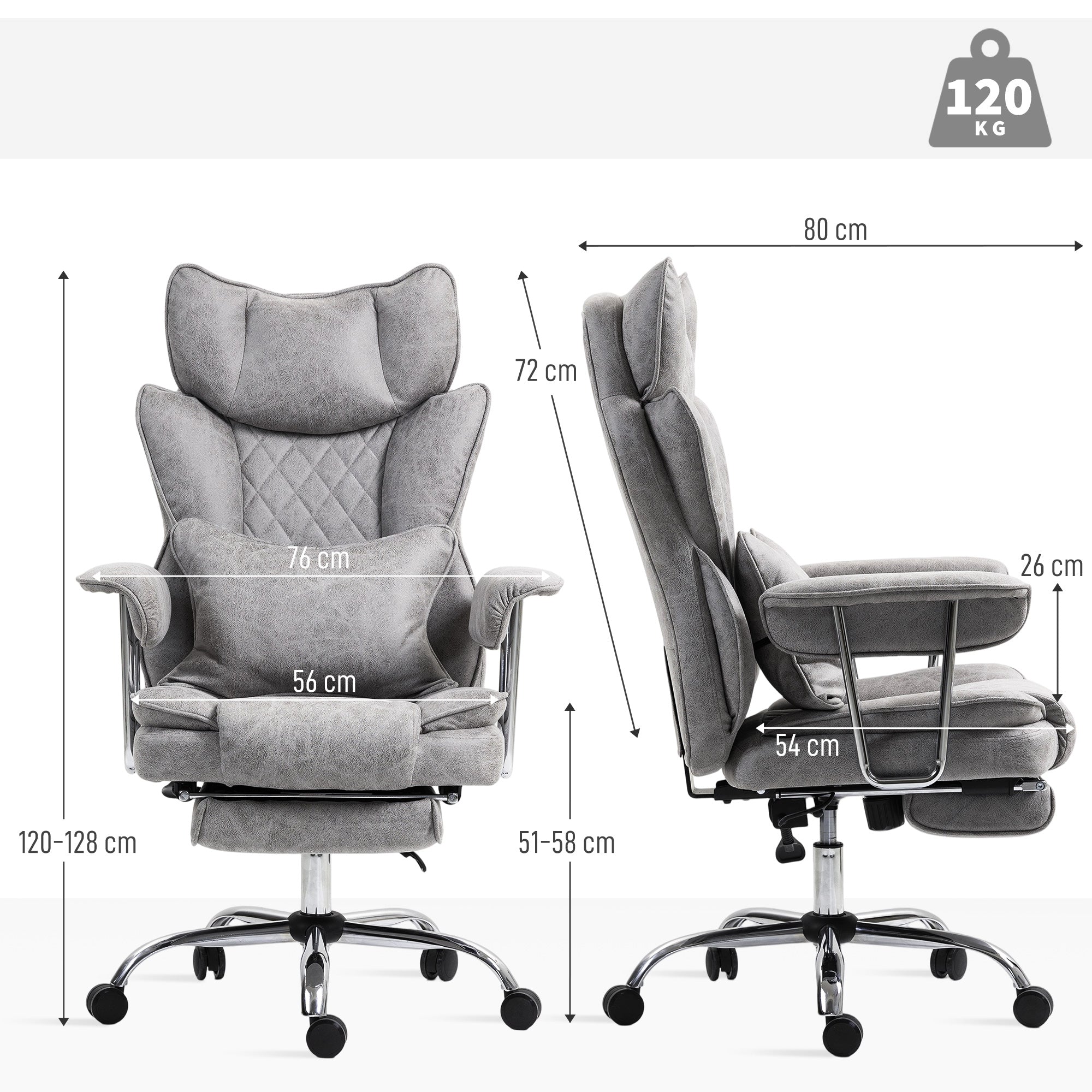 Elevate your workspace comfort with the HOMCOM Office Chair with Footrest. This high back office chair features a lumbar support pillow, thick doll cotton and foam padding, extending support from lumbar to thigh. Wrapped in unique leathaire fabric, it offers a leather-like look with the breathability of fabric. A versatile choice for both home offices and computer desks!