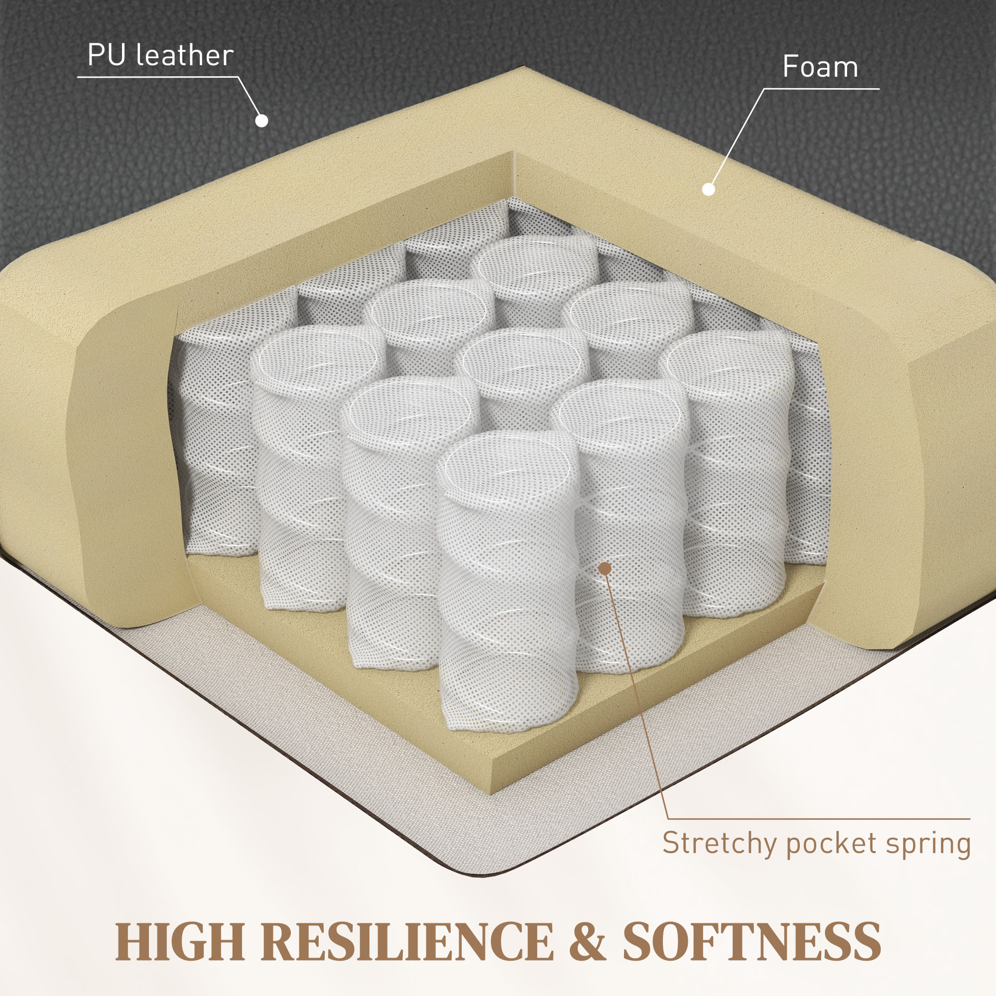 - Material: PU Leather, Foam, MDF, Rubber Wood