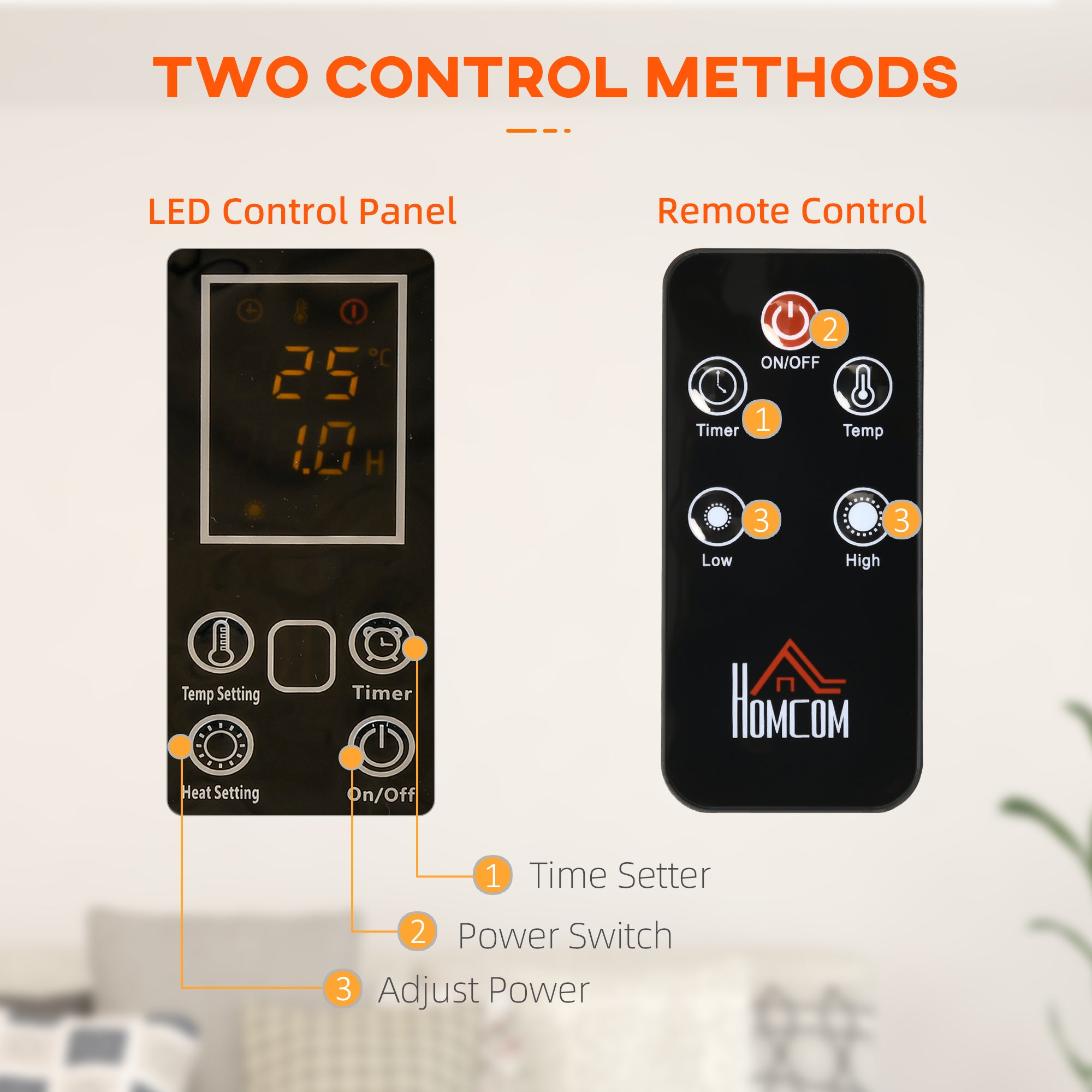 HOMCOM Mica Electric Space Heater, Portable Heater for Home with 2 Heat Settings, Living Room, Study, Garage, Adjustable Temperature 18-30°C, 1000W/2000W, Black