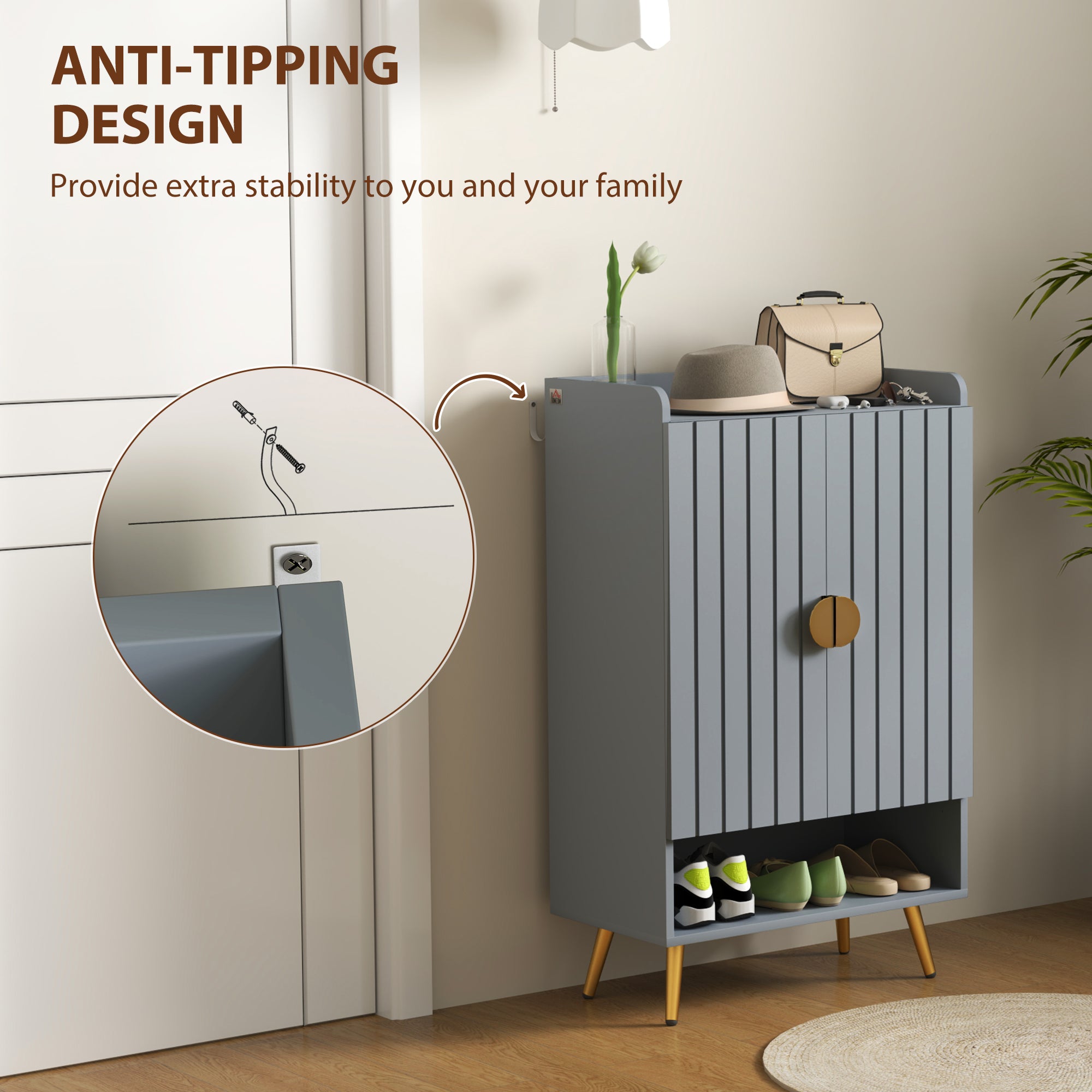 HOMCOM Modern Shoe Cabinet with 2 Doors, Open Shelf and Adjustable Shelves, 15 Pair Hallway Shoe Cupboard, Entryway Storage Unit, Light Grey